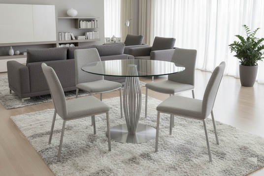 Clean lines, slim profiles and subtle curves give our Dining Chair and Dining Table designs a modern yet timeless feel. Neutral wood tones and minimalist glass and stainless steel details blend seamlessly with a variety of interiors, from cozy kitchen nooks to open-concept dining spaces. The result is a setting that feels considered, uncluttered, and welcoming every day.