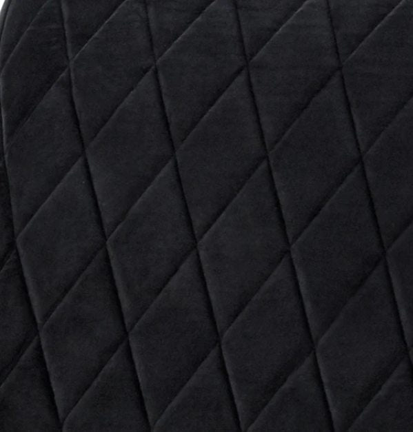 Fully upholstered in soft, luxurious Raven Parisian Velour for elegance and comfort.