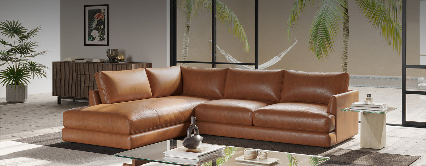 Our kiln-drying process prevents warping and cracking, while reinforced steel components provide exceptional strength and longevity. Every leather sofa, leather sectional and corner sectional leather sofa in the Serena Collection is engineered for long-term comfort, reliability, and timeless style.