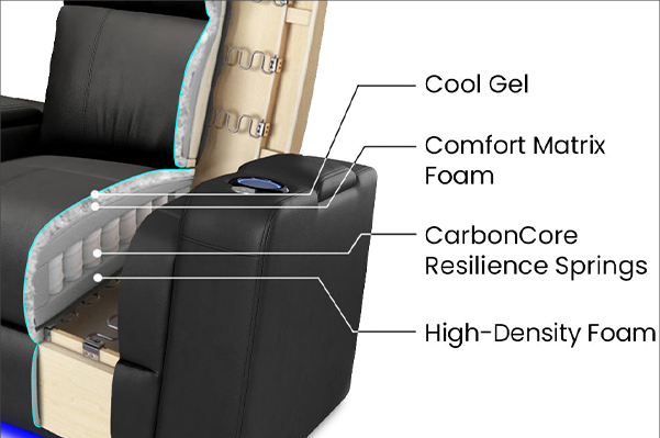 A precision blend of memory foam, cool gel, springs, and high-density foam—crafted for adaptive comfort and a cooler, more ergonomic seating experience.