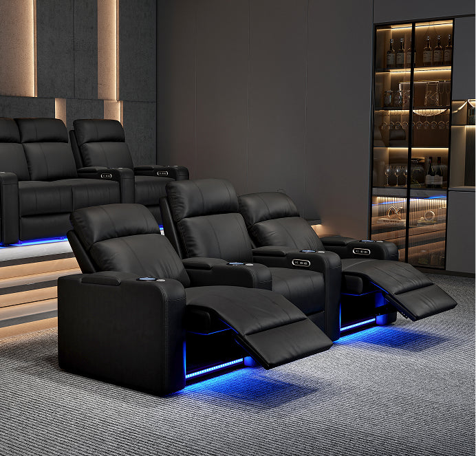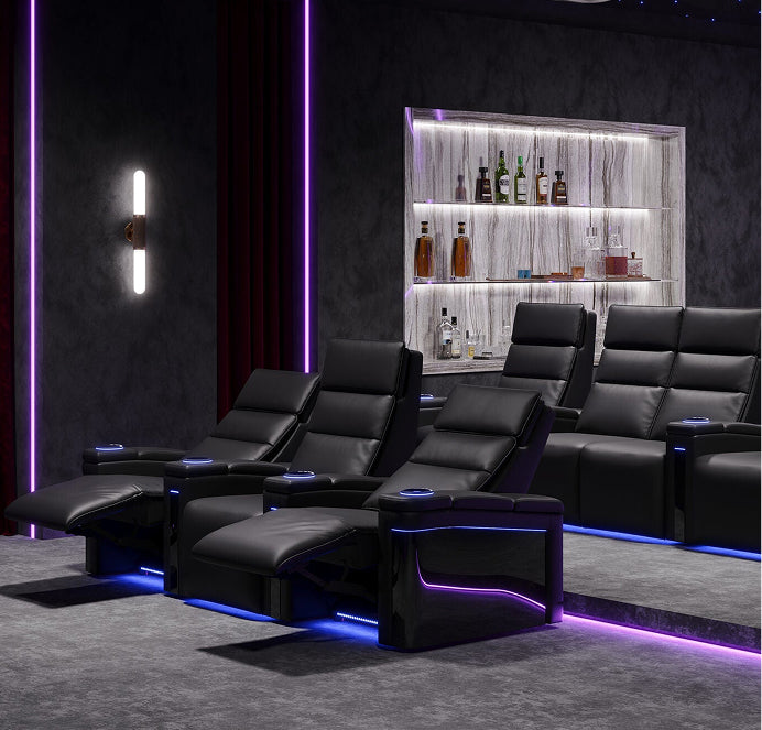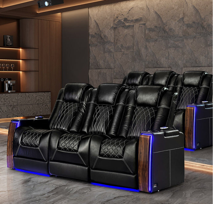 We create our base with high-quality birch-wood,Legget & Platt recliner systems and top-grade Nappa leather to ensure that your theater seat lasts foryears to come, constantly providing you a comfortable and luxurious experience.