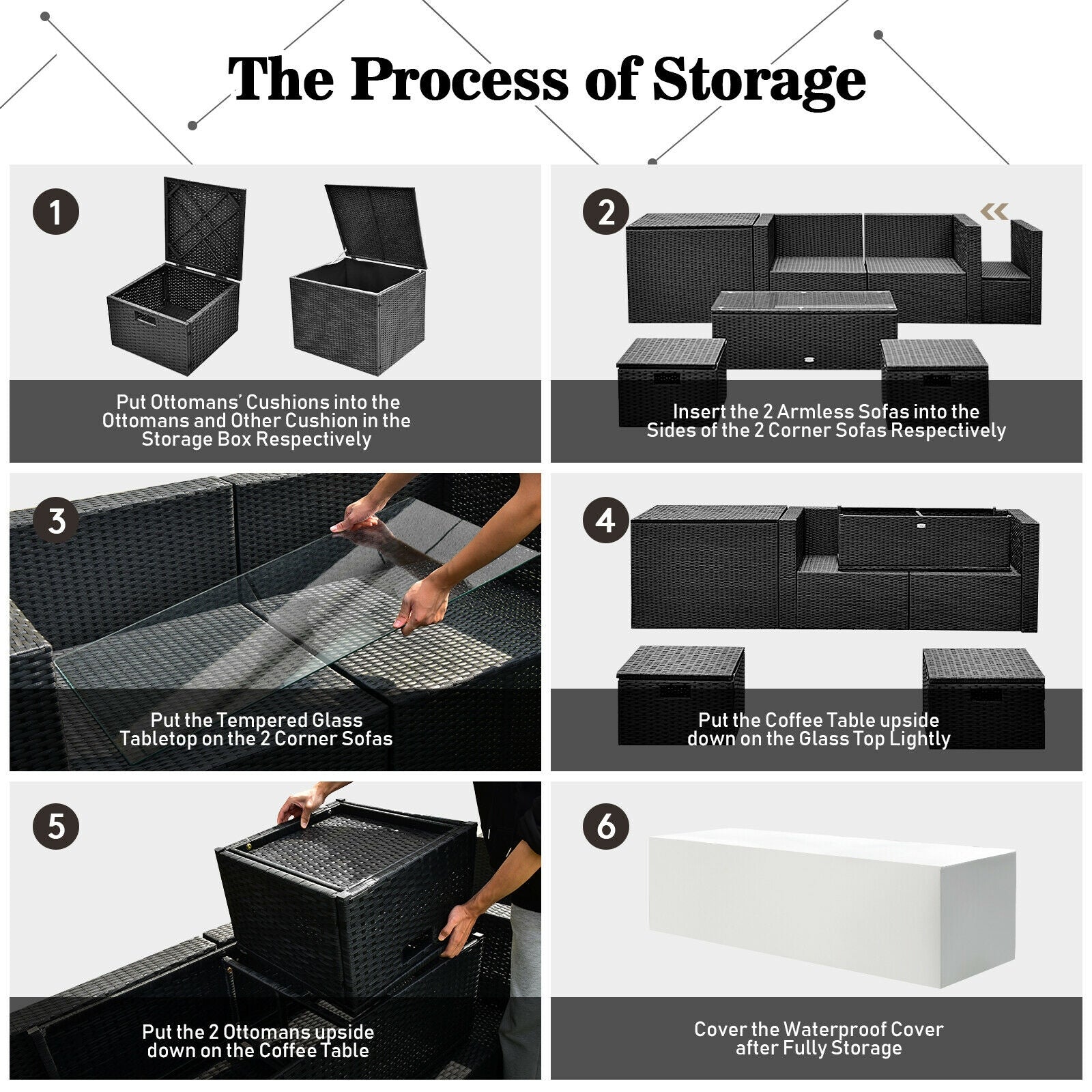 8 Pieces Patio Rattan Storage Table Furniture Set