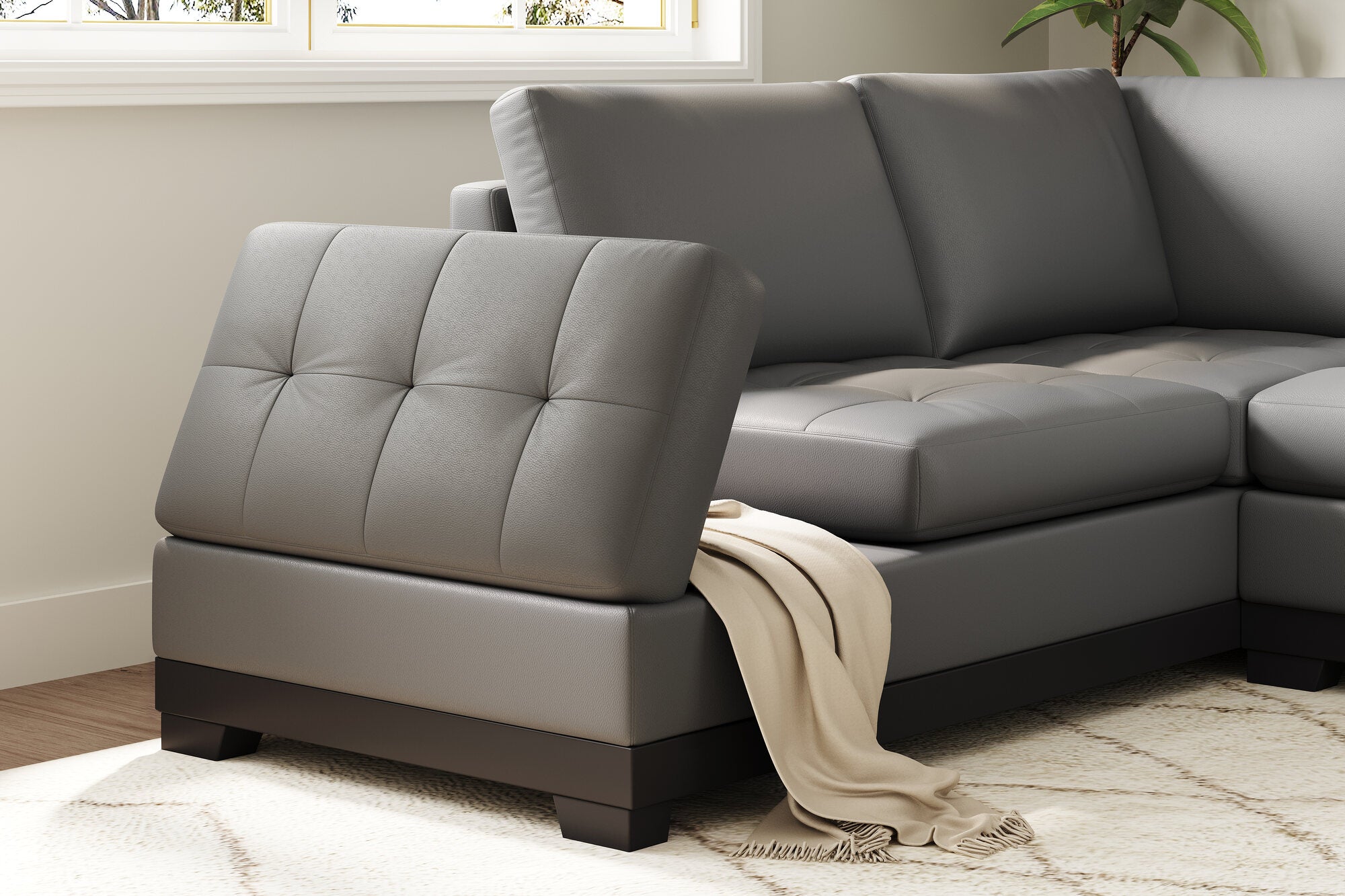 Experience luxury and comfort fused into the Aine Top Grain Leather Sectional Sofa. Wrapped in Italian Nappa 11000 Top Grain Leather, it offers a chic aesthetic and enduring quality. High-density foam cushions on a kiln-dried hardwood frame for unparalleled support. Its thoughtful design includes removable seat and back cushions for customization and no-sag sinuous springs for long-lasting comfort. With wide arms and a supportive back, it welcomes relaxation, while a discreet storage space adds practicality. Elevate your space with the perfect blend of style and functionality in the Aine Sectional Sofa.