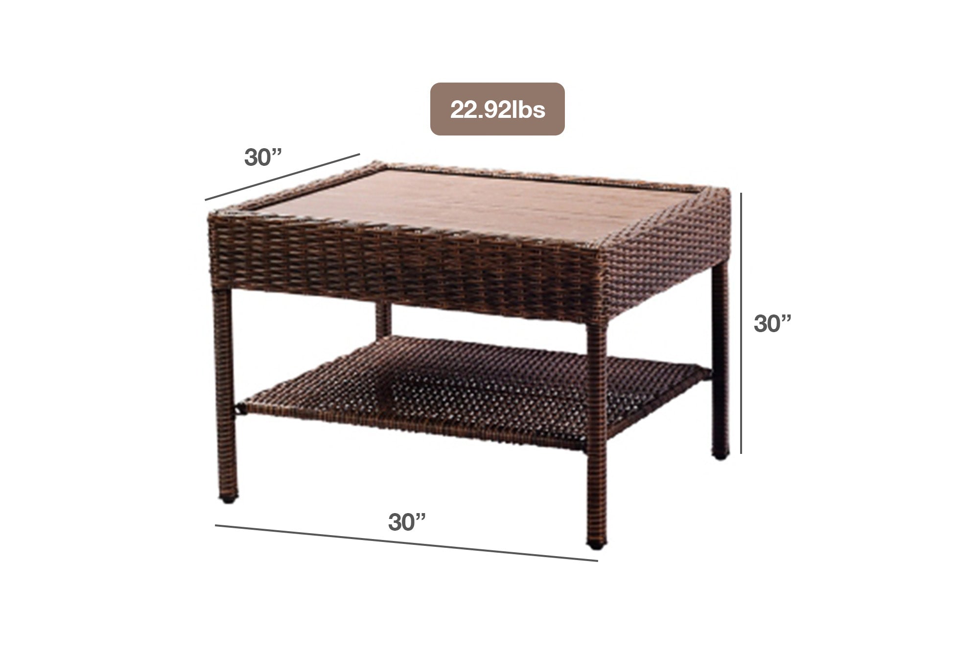 - Versatile Sectional Configuration: Includes a Left Arm Chaise, Armless Middle Chair, and Right Arm Loveseat, with additional Coffee and End Tables to complete your outdoor setup.