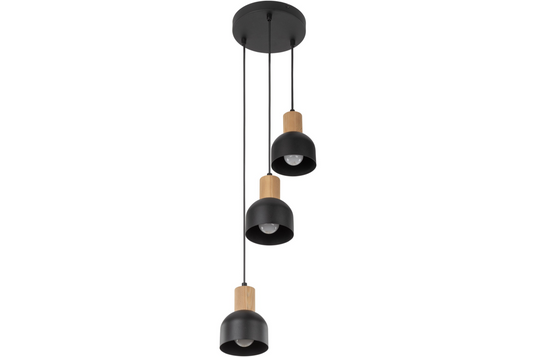 The CAIRO hanging lamp collection is perfect for stylish and minimalist interior fans. Each lamp features sleek black metal shades and a wooden decorative element, adding elegance to any space. The collection offers various options, from single pendants that enhance smaller areas like corridors or cozy cafes to 3-flame versions ideal for larger rooms such as living or dining areas. CAIRO lamps provide both practical lighting and aesthetic appeal, seamlessly complementing both modern and classic interiors. Elevate your space with CAIRO—where functionality meets beauty.