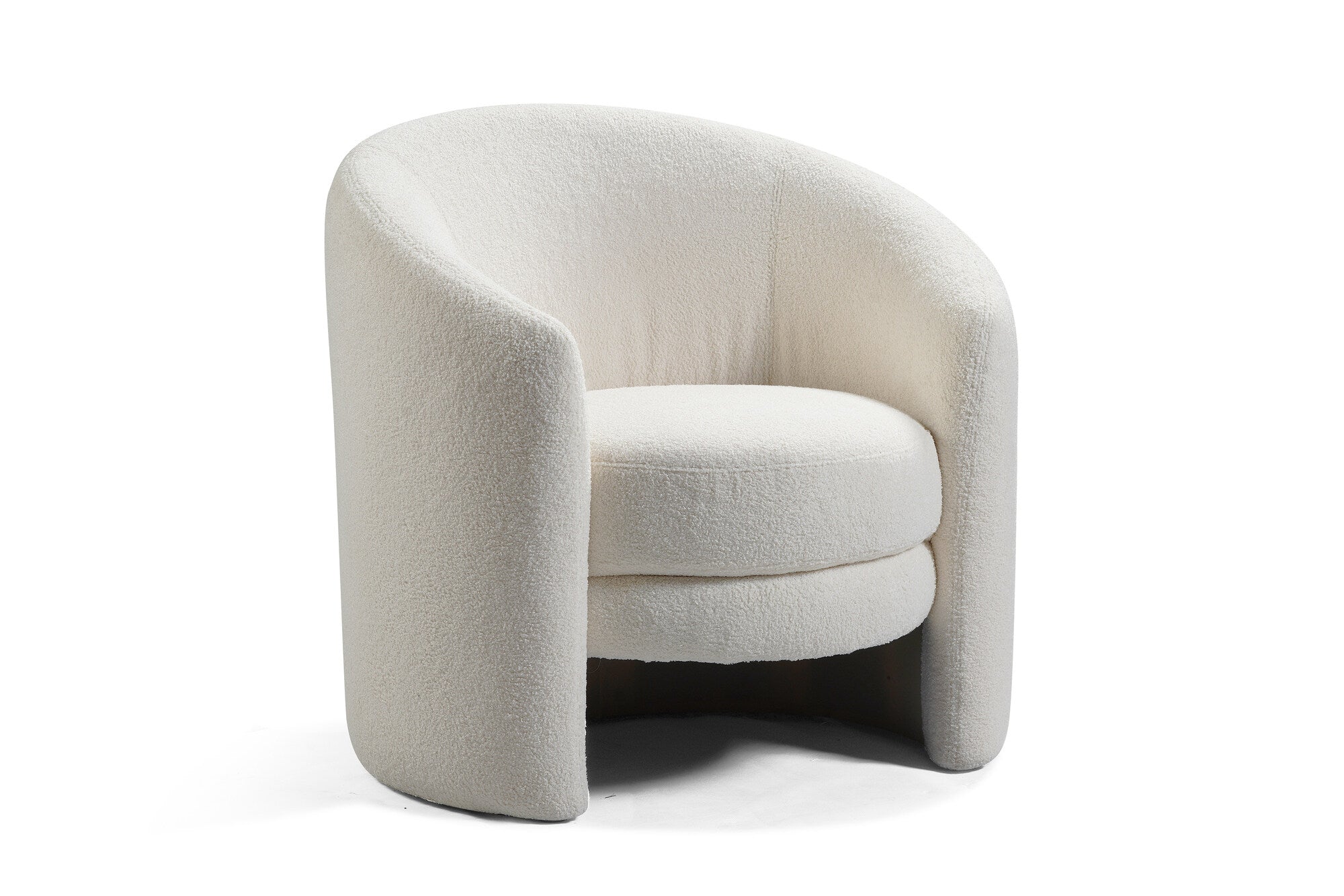 Indulge in the luxurious embrace of our creamy bouclé fabric that gently envelops every curve of this impeccably stylish and cosy chair. Its irresistible texture, reminiscent of vintage elegance, creates an inviting ambiance that beckons you to unwind and relax. Whether you're curling up with a good book or enjoying a leisurely lounge session, this chair offers a perfect combination of comfort and sophistication.
