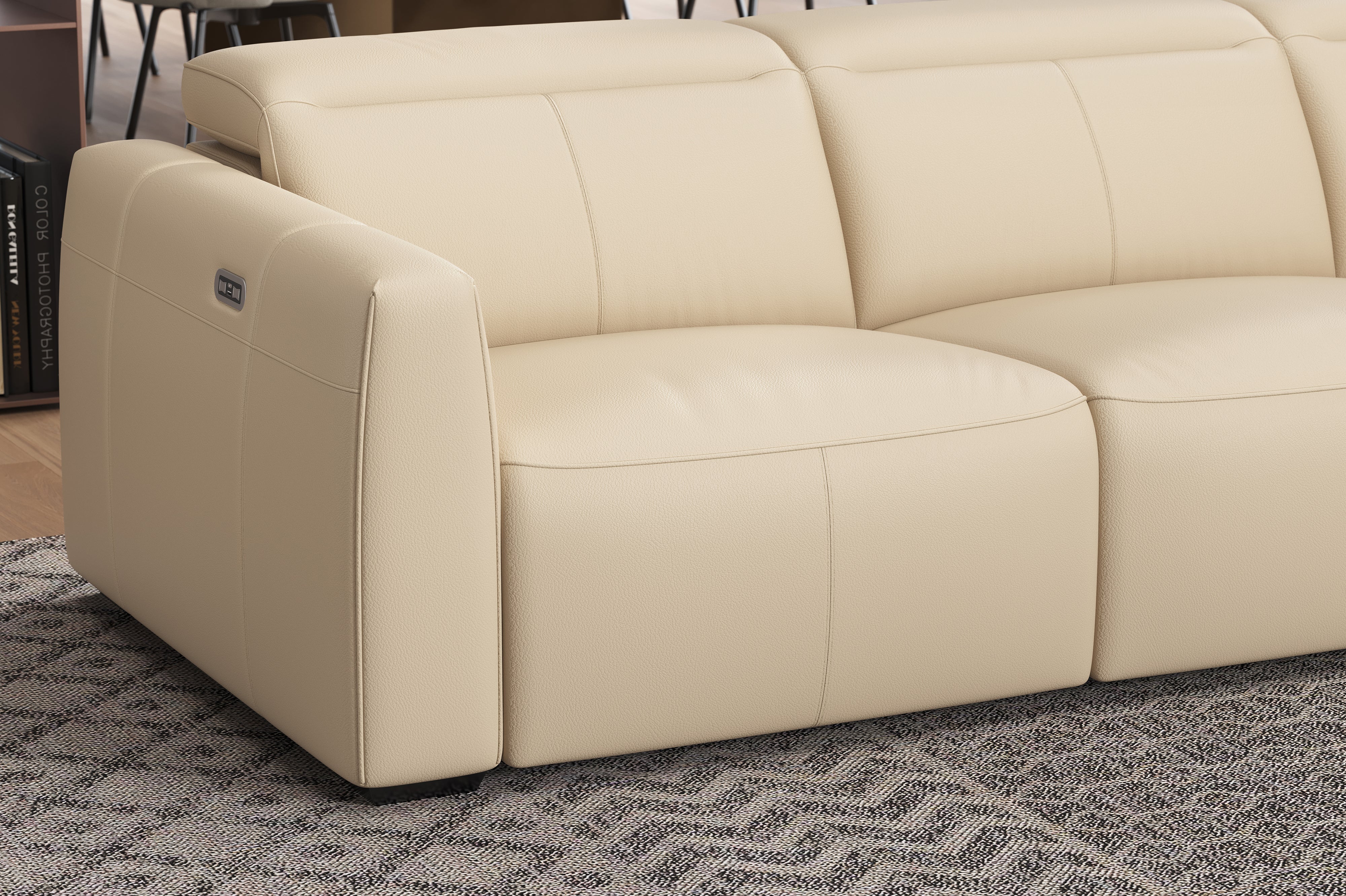 Experience unrivaled comfort with the Carmen Leather Modular Electric Reclining L-shape Sofa. Its gracefully curving armrests and supportive backrests promise indulgent relaxation, while the electric headrests and footrests offer personalized comfort at your command. Wrapped in premium Italian Nappa 11000 Top Grain Leather upholstery, it adds an opulent touch to your living space. Elevate your lounging experience with Carmen, where the intersection of luxury and functionality is truly exceptional.