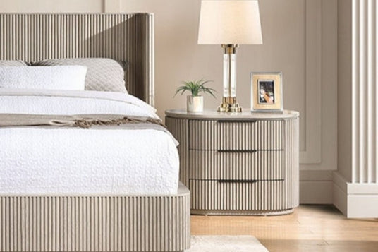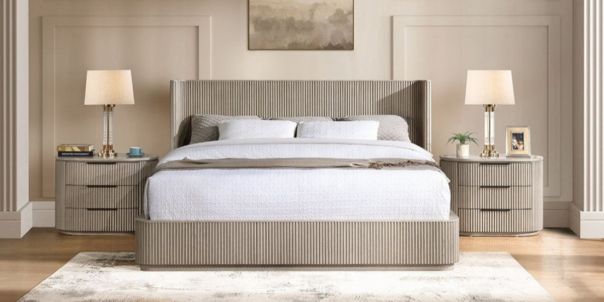 The matching nightstands blend function with romance—each featuring a built-in USB port, Type-C outlet, and dual sockets to keep your devices charged without compromising style. Felt-lined top drawers, soft-closing glides, and classic dovetail joints ensure your treasures are stored with care. A hidden jewelry tray add just the right touch of everyday luxury.