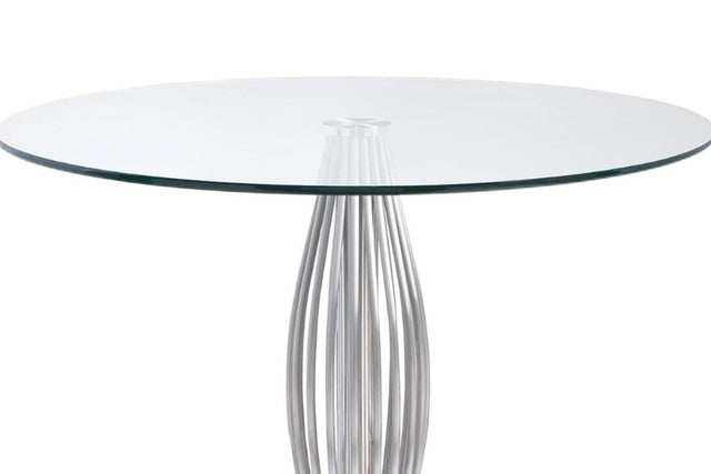 - Combination of glass and steel creates a chic, contemporary statement piece for your dining area.