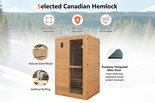 | Material | Canadian Hemlock, Tempered Glass, Carbon Heater |
