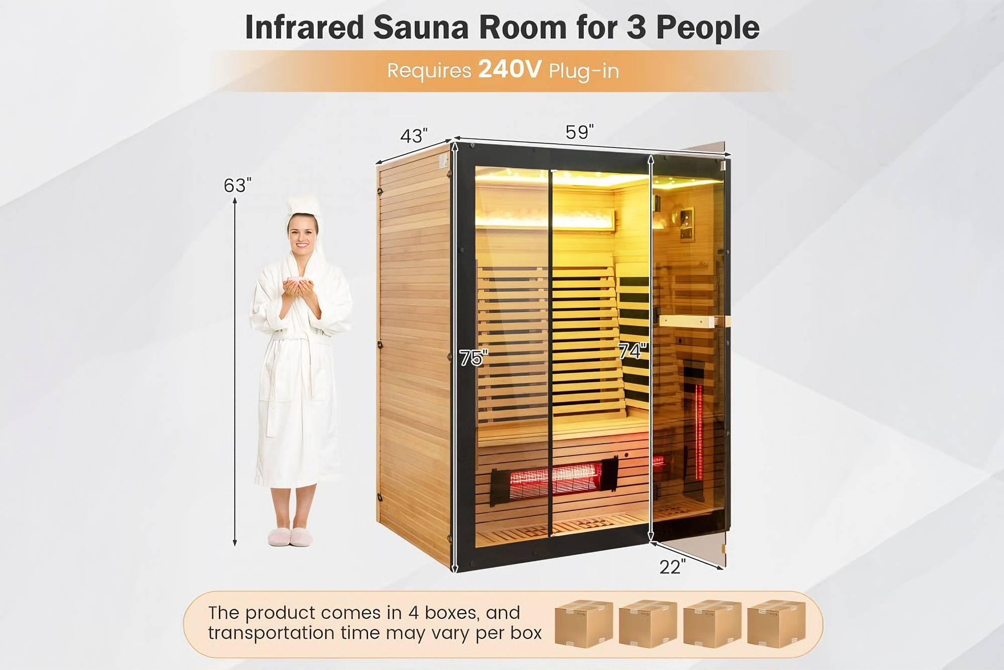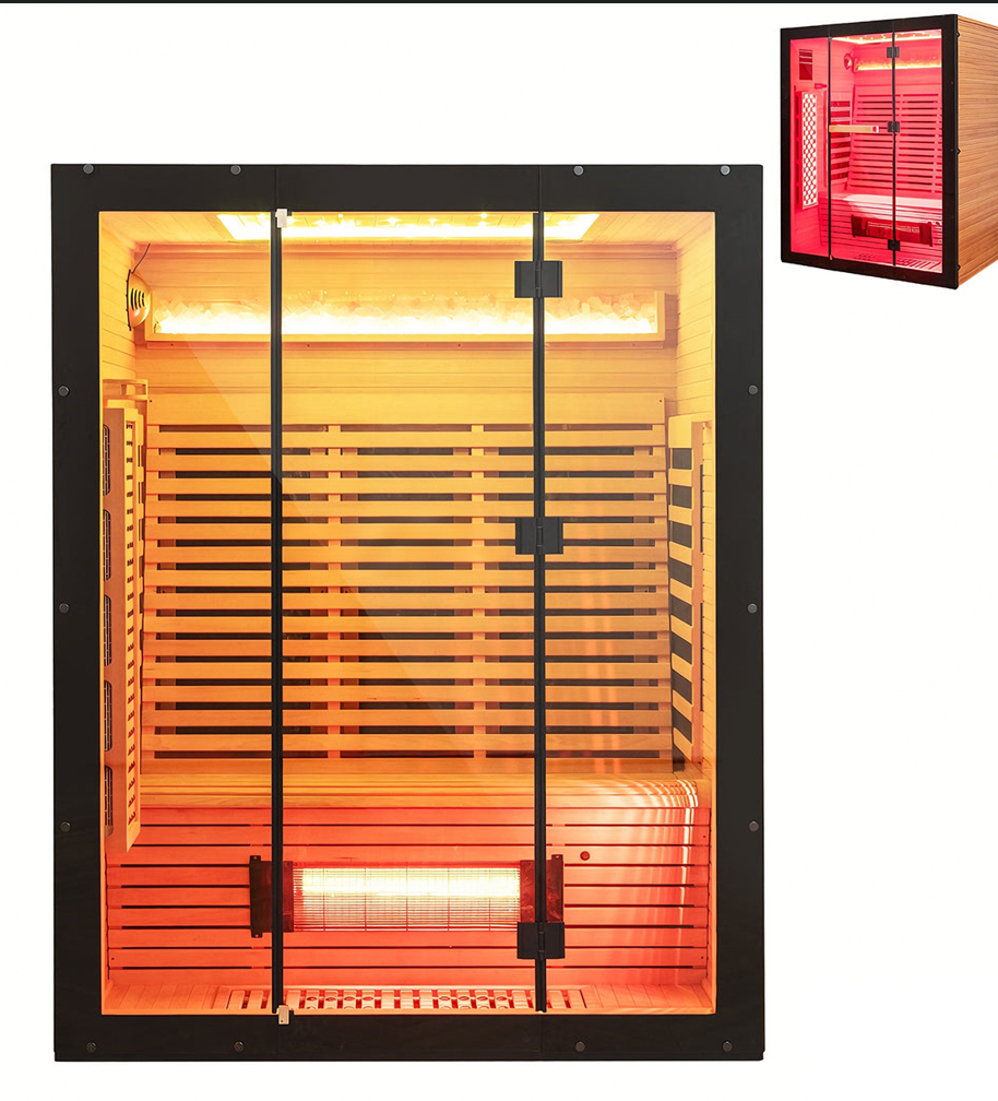Transform your home into a luxury wellness retreat with this 3-person full spectrum infrared sauna. Combining advanced infrared heat with red light therapy, it delivers deep relaxation, improved circulation, and faster recovery. Designed with premium Canadian Hemlock, chromotherapy lighting, and smart app control, it offers a complete spa experience with modern convenience and lasting durability.