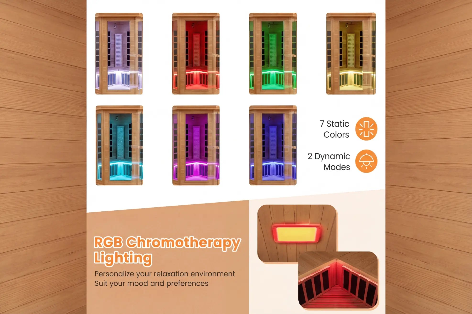 - Full Infrared + Red Light Therapy: Deep heat and skin rejuvenation in one session