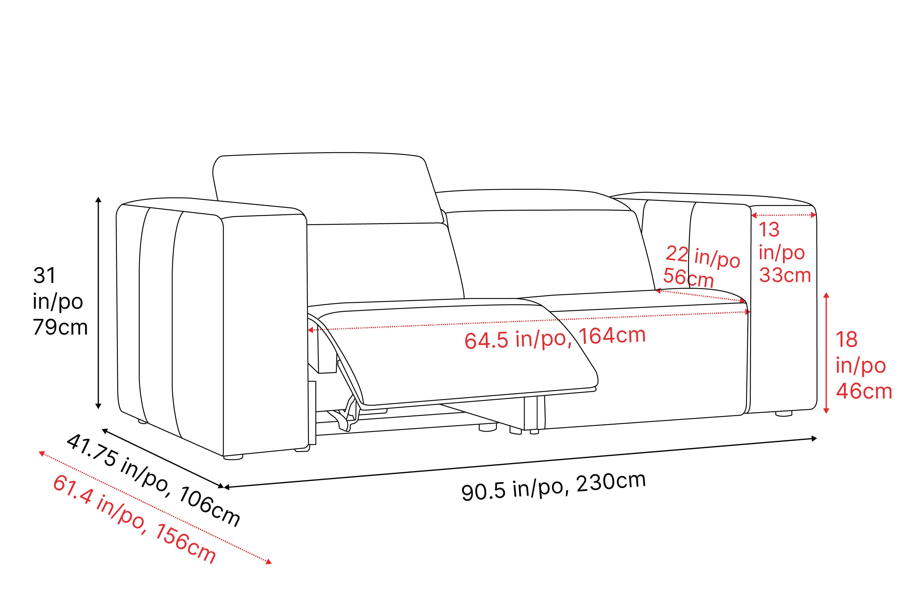 Dimensions (WxHxD)90.5 in, 31 in, 41.75 in123 in, 31 in, 41.75 in