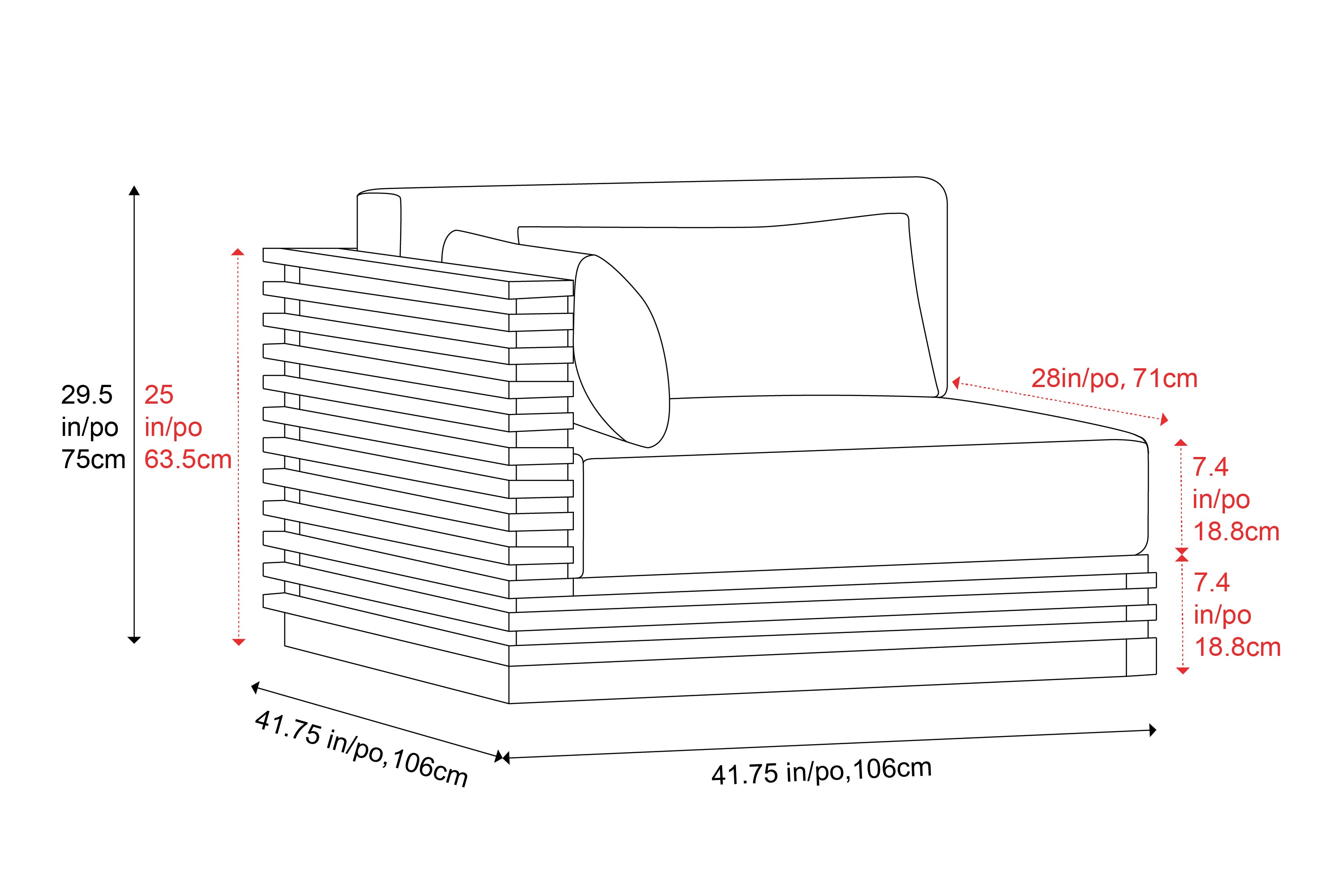 Experience ultimate relaxtion with Elise Sectional sofa.The sofa's modular design and diverse color options empower you to create a living space that reflects your unique taste and preferences. Polyfoam seating wrapped in high density foam cushioning. The base made in Solid Teak Wood with natural wood finish. Elevate your space with the modern comfort and timeless style of the Elise Collections.