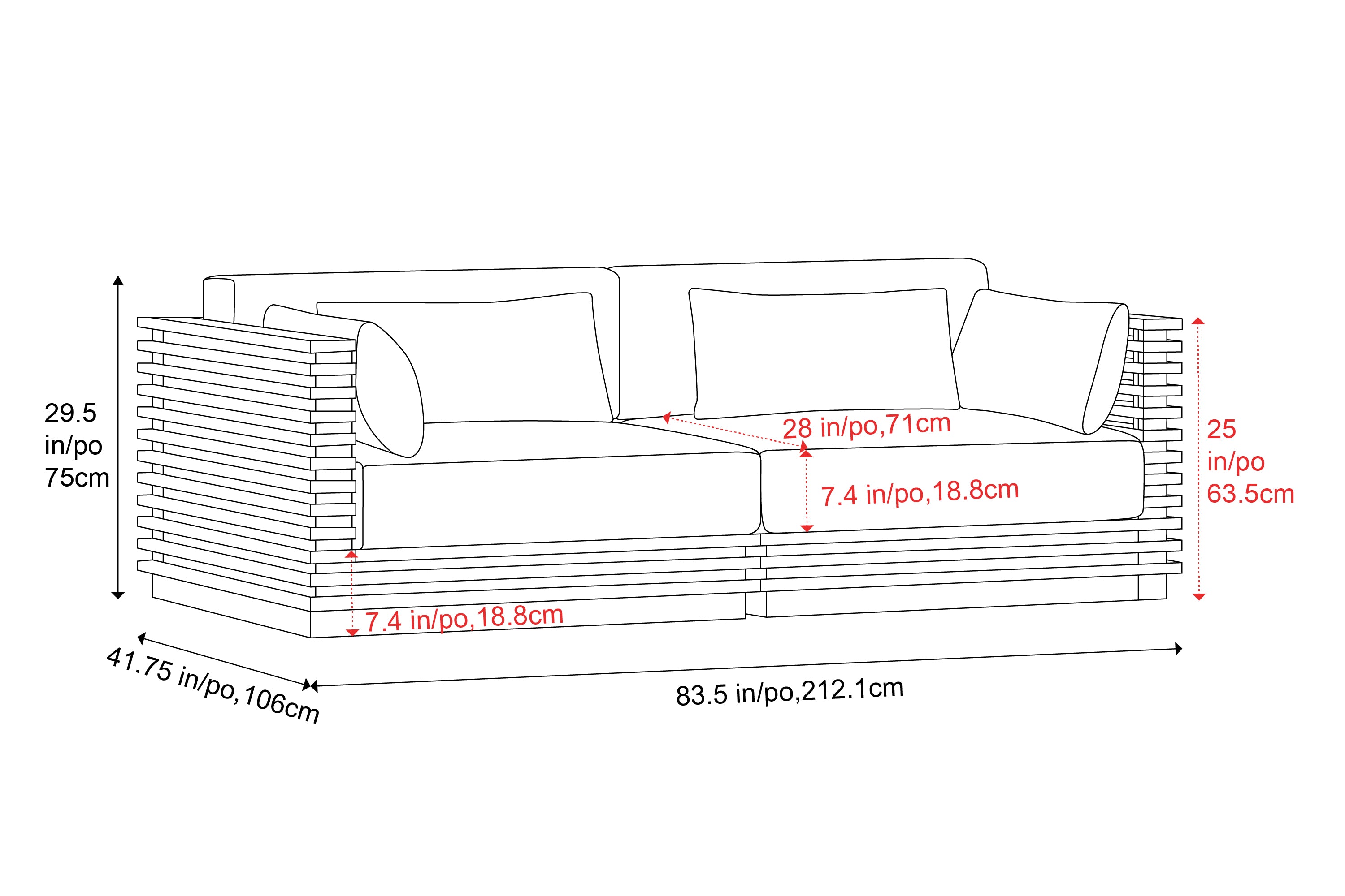 Dimensions (WxHxD)83.5 in, 29.5 in, 41.75 in120.3 in, 29.5 in, 41.75 in83.5 in, 29.5 in, 41.75 in120.3 in, 29.5 in, 41.75 in