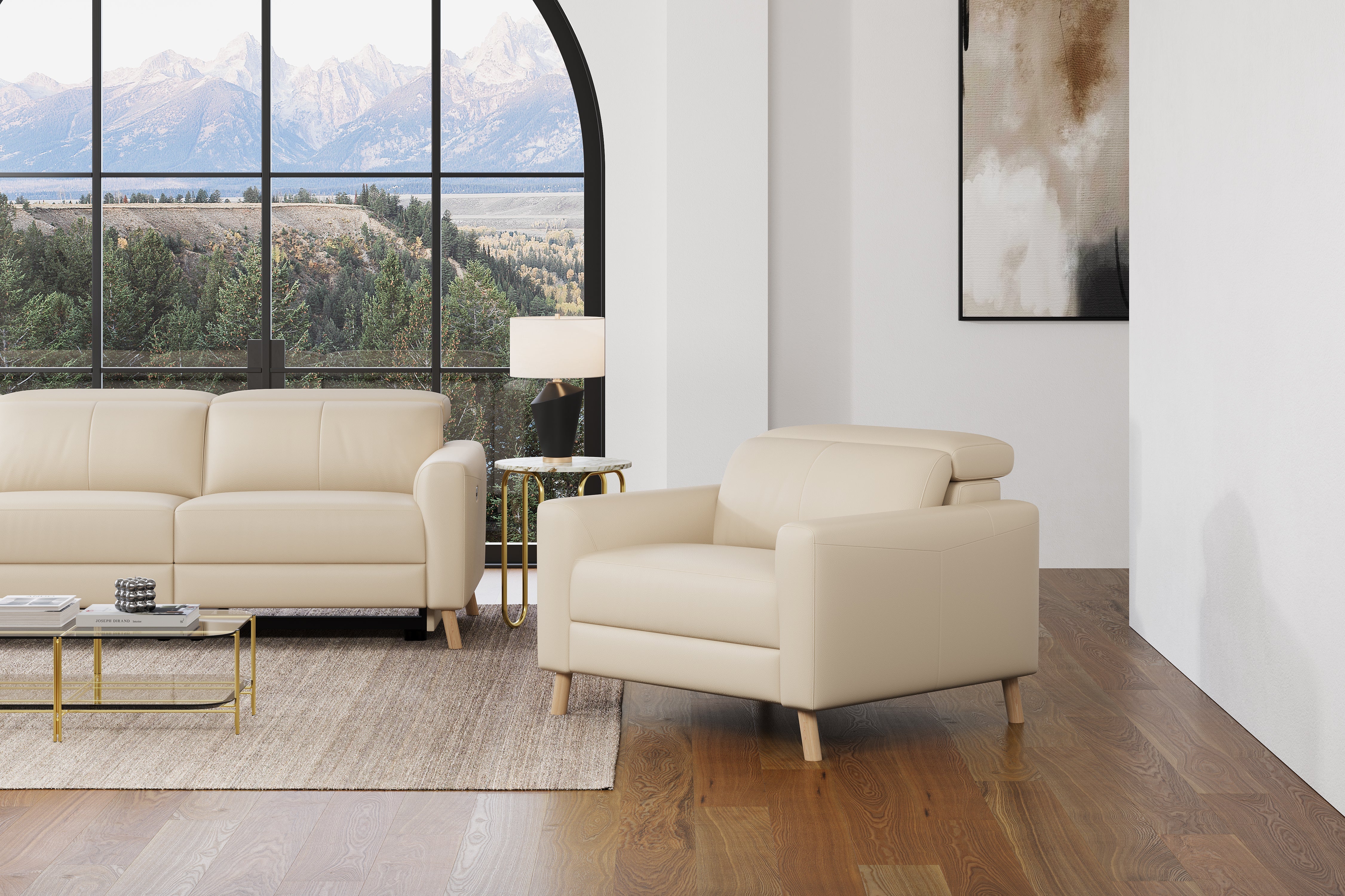 Introducing the Elodie Leather Accent Chair, where style meets innovation and comfort. This contemporary piece features Italian Nappa 11000 Top Grain Leather on all seating surfaces, offering a blend of style and practicality. Dive into relaxation with adjustable manual headrests discreetly nestled within the sleek design. Engineered with an upscale Kiln-Dried Hardwood frame, it combines style and stability. Experience sophistication and indulgence at its finest with the Elodie Leather Collection.