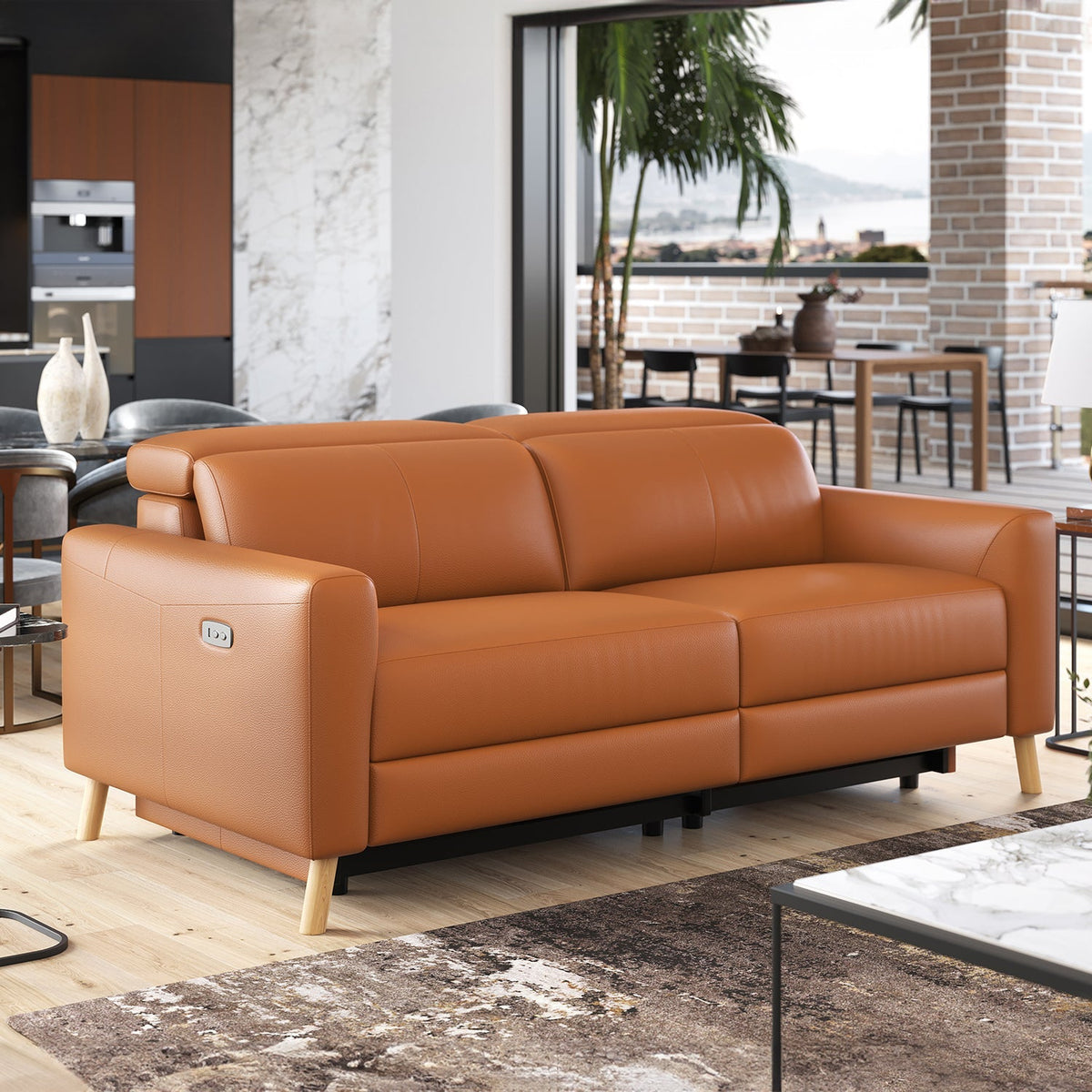 Introducing the Elodie Leather Sofa where style meets innovation and comfort. Crafted from supple, Italian Nappa 11000 Top Grain Leather on all seating surfaces, this contemporary piece boasts both elegance and practicality. Dive into relaxation with adjustable manual headrests and seamless electric recliners discreetly nestled within the sleek design. Engineered with an upscale Kiln Dried Hardwood frame, and light timber legs, it combines style and stability. Enjoy ultimate comfort with a supportive base suspension, high-density cushions, and convenient USB charger controls, granting individual adjustments for reclining and headrests. Experience sophistication and indulgence at its finest with the Elodie Leather Sofa.