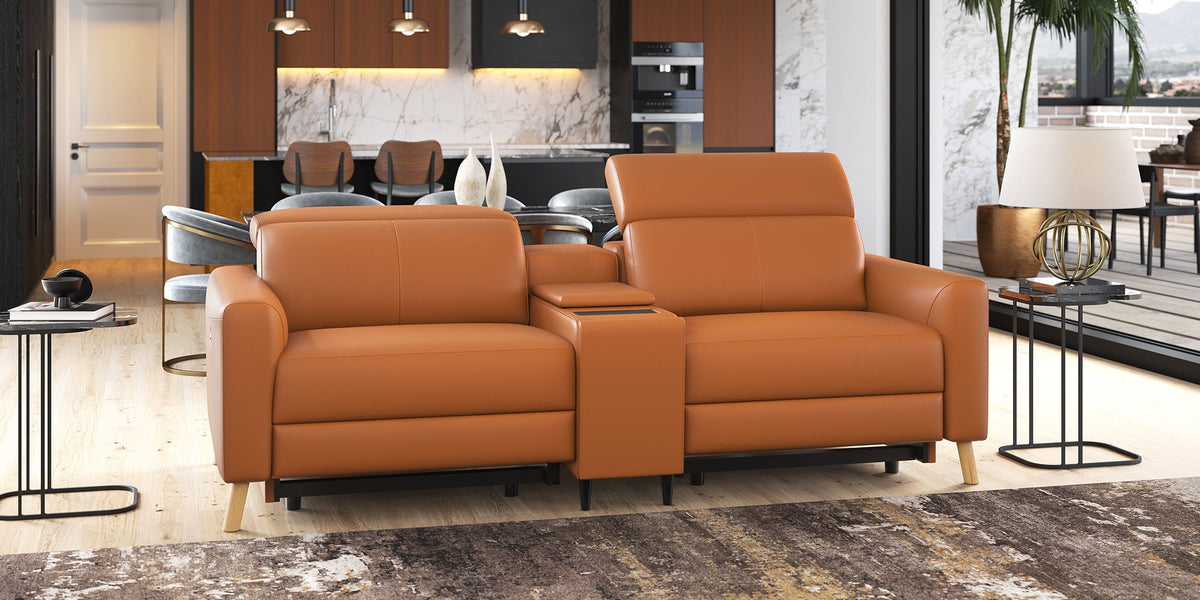 Elodie Leather Dual Recliner Sofa with Console