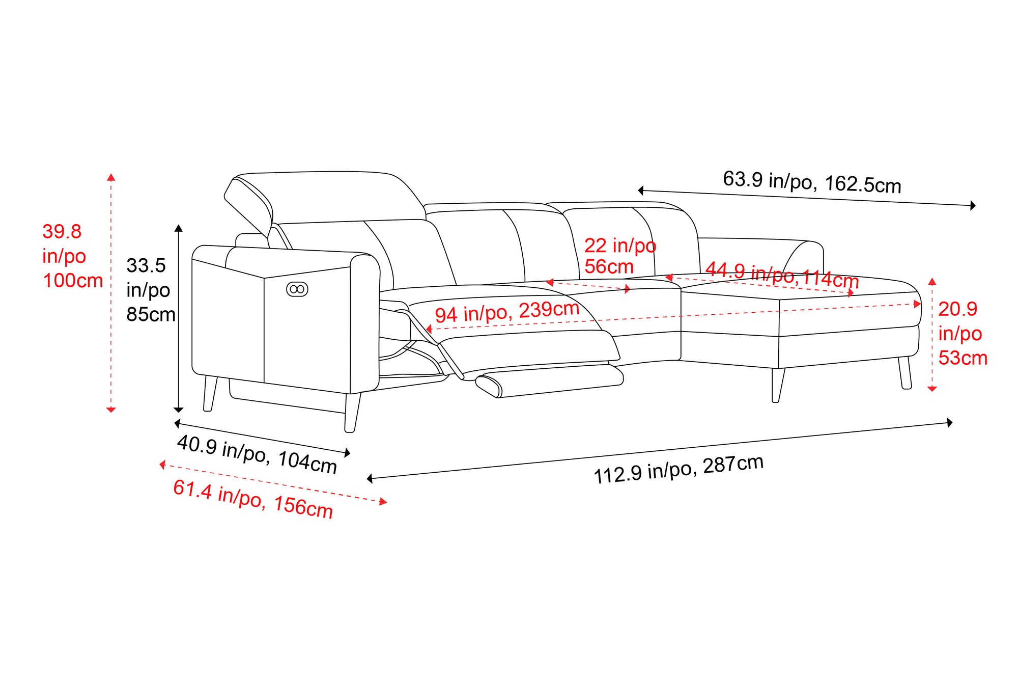 Motion TypeElectric Power Recliner, Manual Adjustable Headrest