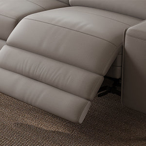 Experience customizable relaxation with its electric-powered recliner and power headrest, offering independent control with a built-in USB charge nestled in its square-tailored arms. This advanced system is equipped with a quiet and smooth motor, providing a silent reclining experience.