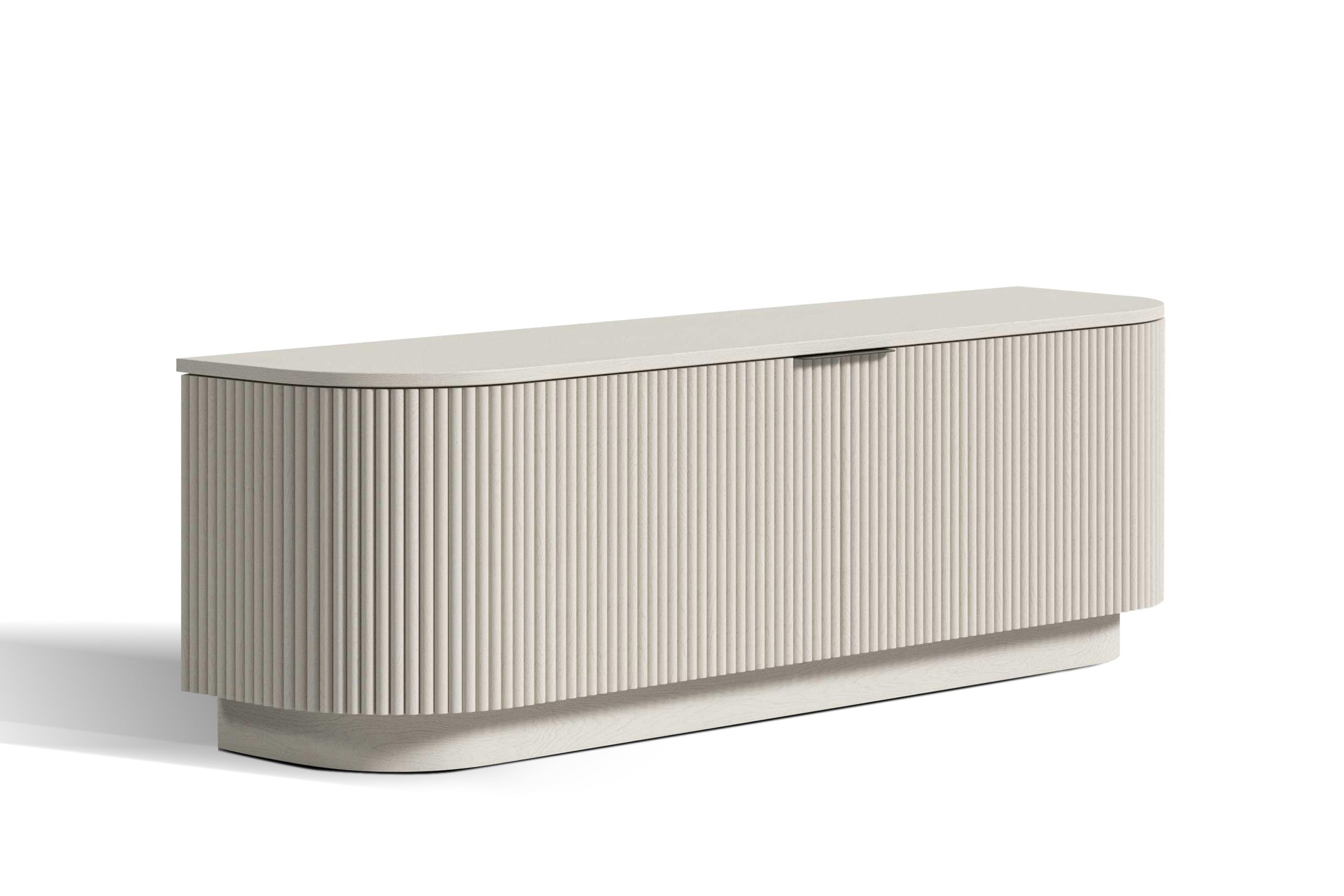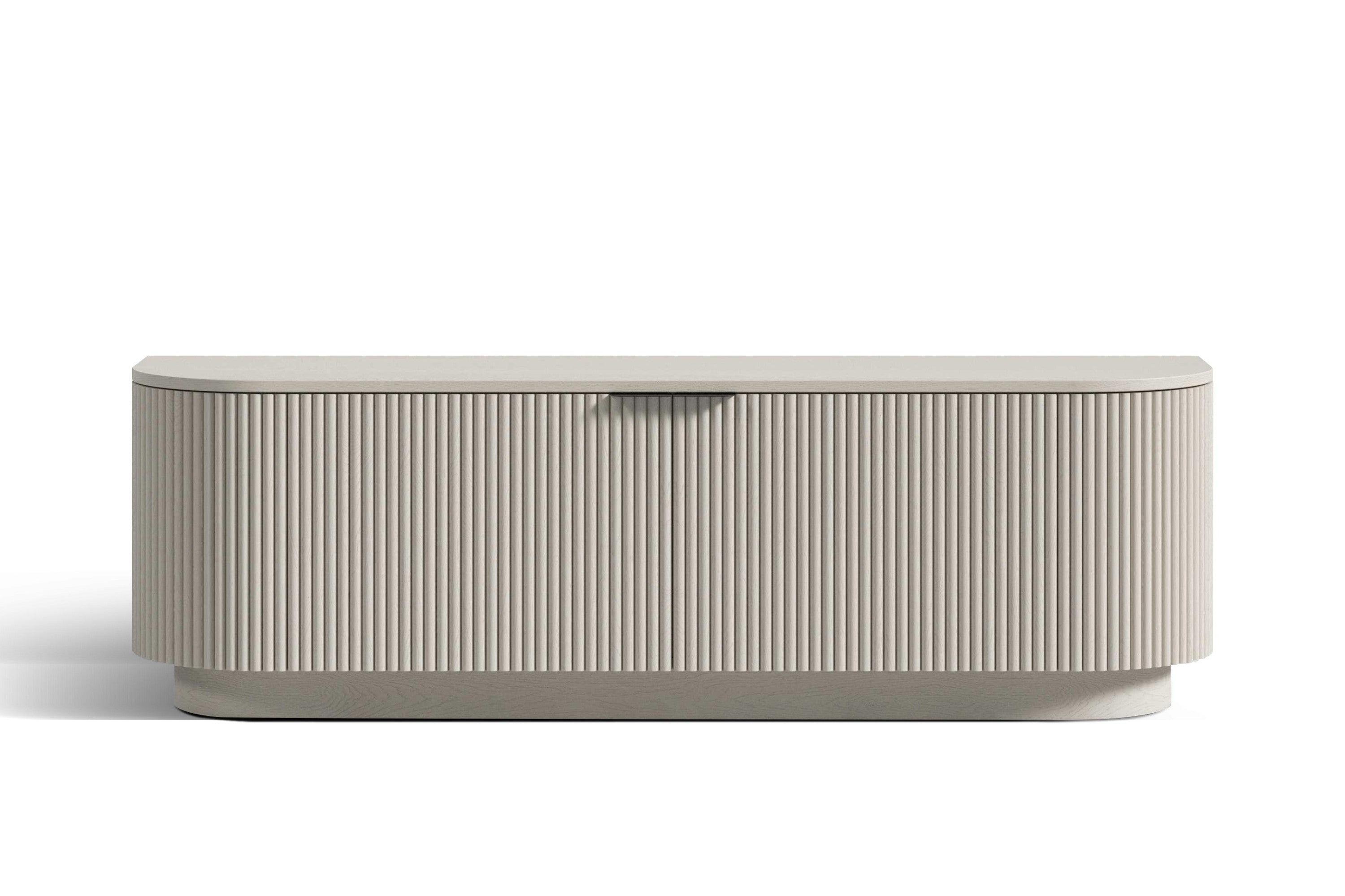 The Flutra Media Console combines sleek style with practical functionality for your entertainment space. Its white matte finish delivers a clean, modern aesthetic, while slim black matte metal handles add a bold accent. Adjustable shelves and two cable access holes in the back keep your devices organized and cords neatly hidden. Designed with safety and convenience in mind, it features anti-tip wall hardware, soft-close hinges, and door bumpers for smooth, quiet use. Elegance meets practicality in the Flutra Media Console.