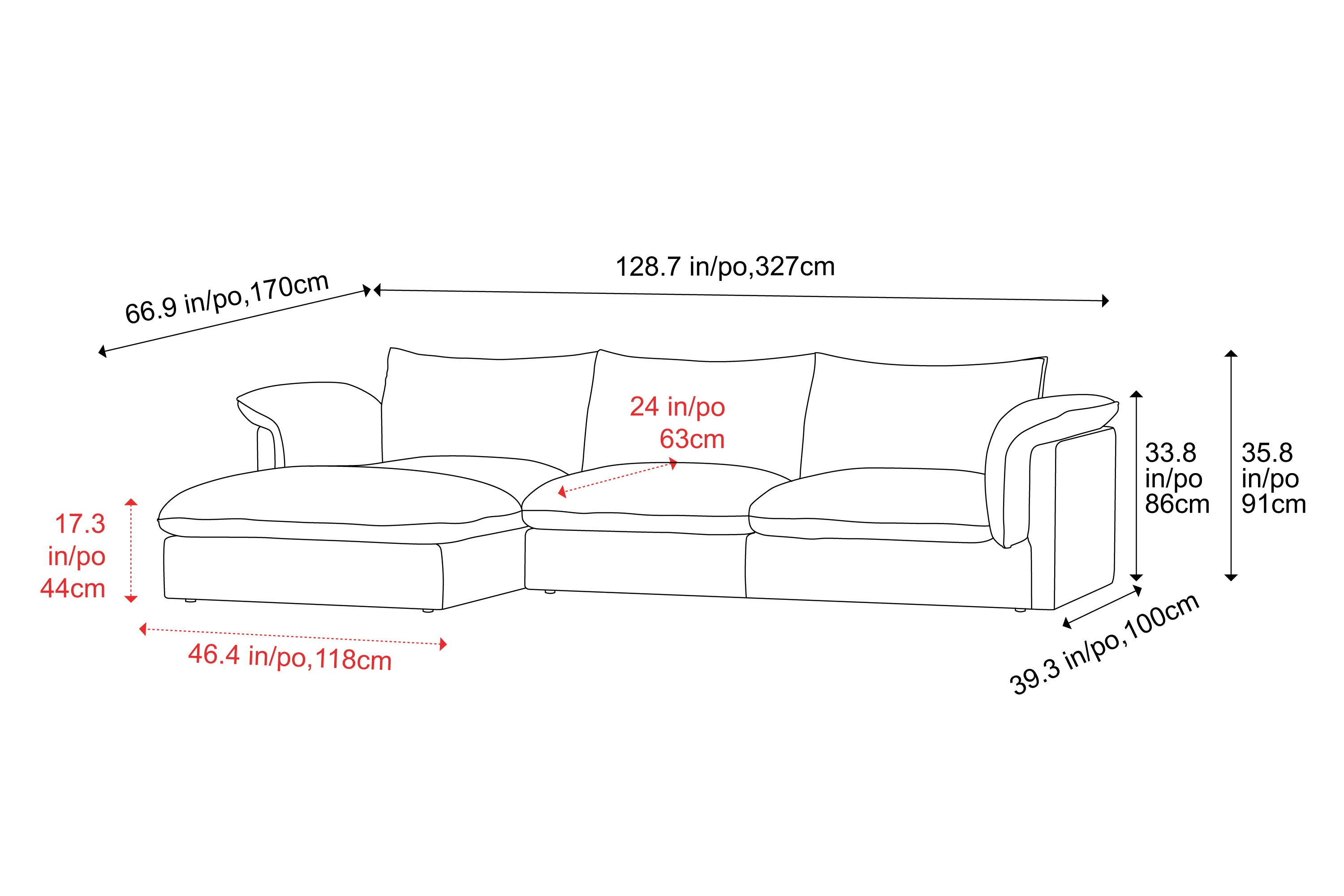 Left Chaise Dimensions