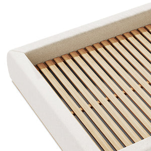 - Wrapped in a luxurious bouclé fabric, the bed exudes opulence, creating an inviting focal point in your sleeping sanctuary.