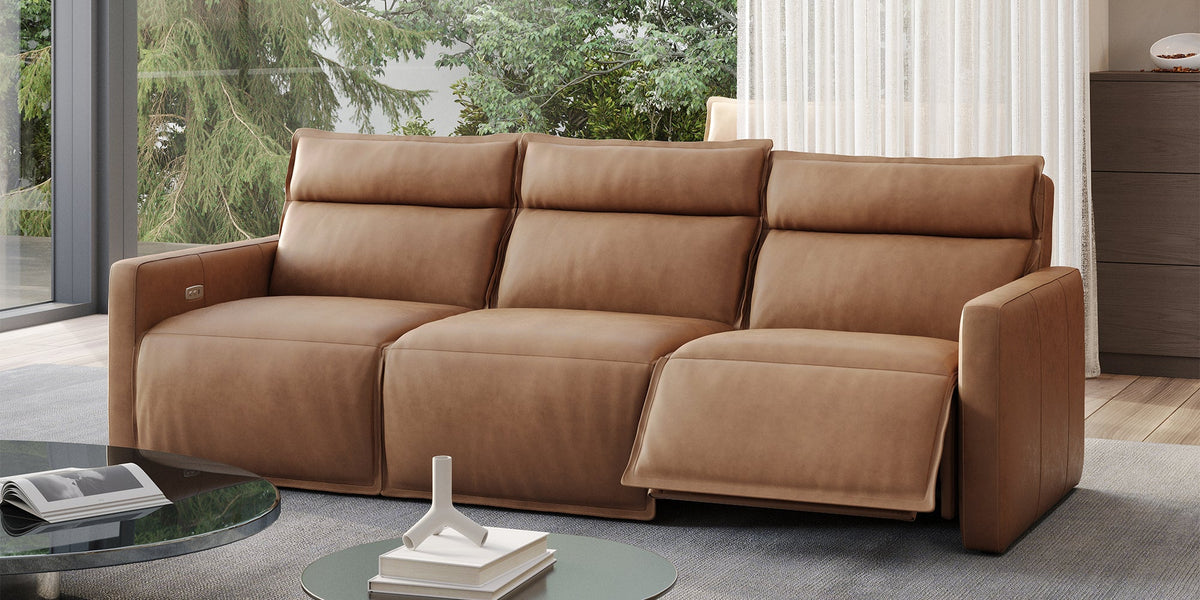 The Giovanni Recliner Sofa, upholstered in Italian Nappa 11000 Top Grain Leather, epitomizes elevated yet casual luxury, displaying superior craftsmanship. Adorned with a flanged edge, its cushions offer indulgent comfort and resilient support, while the two-button motion control allows for seamless reclining and relaxation. Crafted with solid, reinforced hardwood frames and a no-sag spring support system, this sofa ensures lasting strength and stability. Transform your home with the timeless style and graceful functionality of the Giovanni Reclining Sectional Sofa.