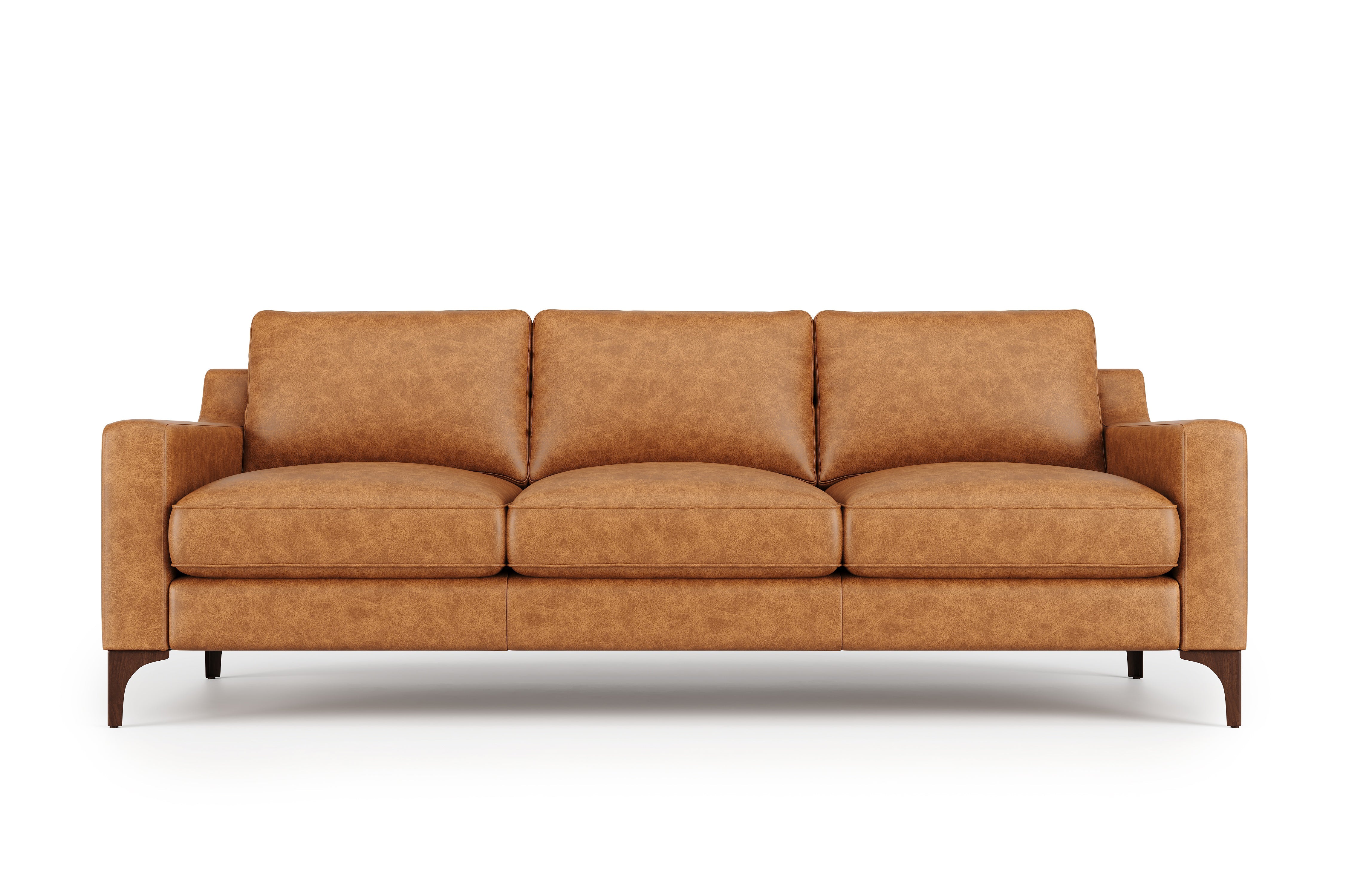The "Hannah" sofa epitomizes contemporary elegance and comfort, expertly crafted from Nappa 11000 Top Grain Leather. This piece is a testament to timeless design, featuring a naturally textured surface that develops an increasingly rich character over time. The sofa's robust frame, constructed from solid wood, is reinforced to ensure enduring stability. It's fitted with Pirelli webbing and high-resilience foam cushions, crowned with a feather blend, offering a sink-in comfort that invites relaxation. Complementing its luxurious upholstery, the sofa stands on sleek, streamlined rubberwood legs, their design harmonizing perfectly with the "Hannah" sofa's sophisticated and inviting silhouette.