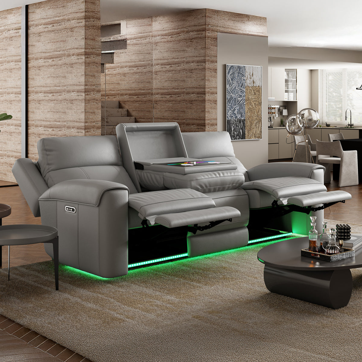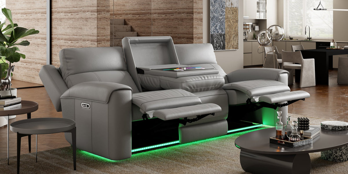 - The dual electric recliner mechanism on both sides features a robust steel frame with power headrest for effortless, personalized, and long-lasting comfort.