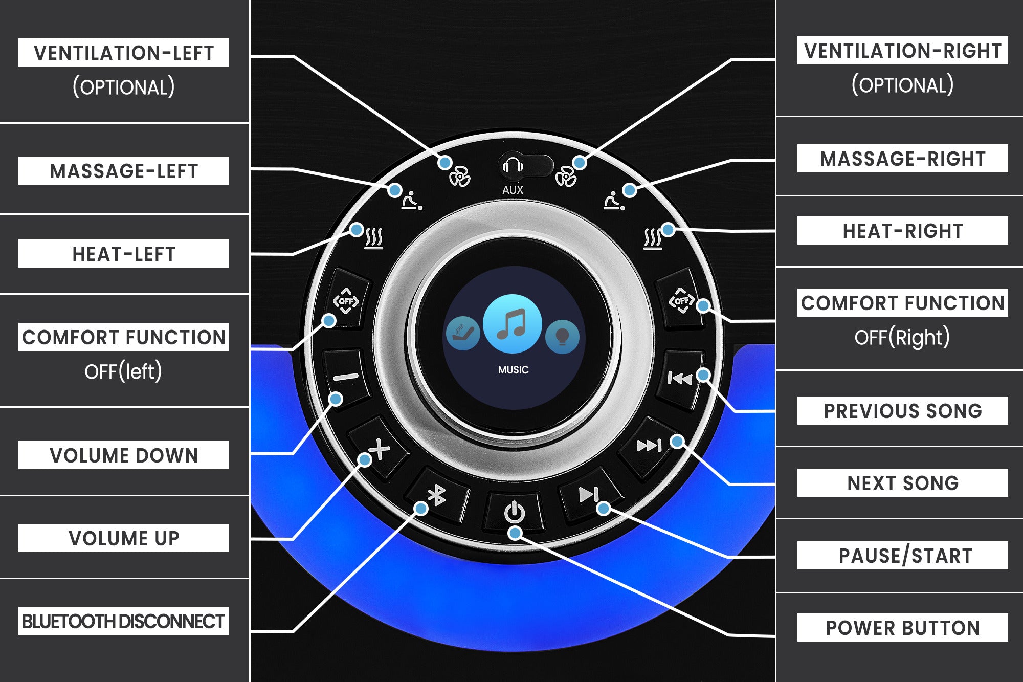 - Indulge in next-level comfort with integrated heat, massage, and ventilation functions that create a spa-like relaxation experience at home.