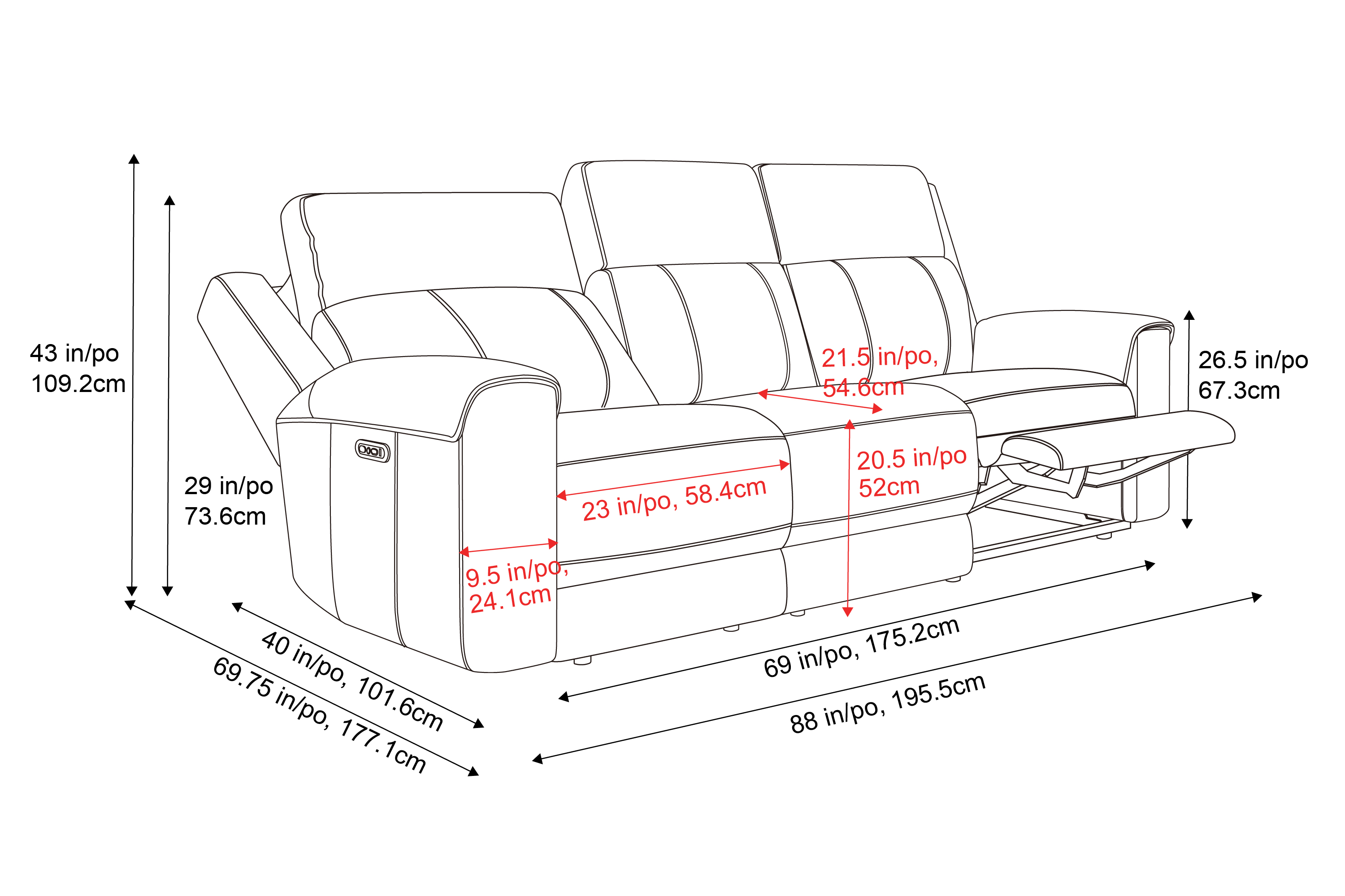 - Conveniently placed USB-A and USB-C ports on the outer armrests keep your smart devices powered while you unwind in luxury.
