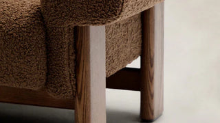 The Hayden Fabric Armchair effortlessly combines comfort, style, and expert craftsmanship. With generous proportions and refined lines, it strikes a perfect balance between aesthetics and relaxation. Its sturdy, solid ash wood frame highlights a distinctive natural grain, enhanced by a protective matte finish for lasting durability. Upholstered in luxurious bouclé fabric, it offers a soft, inviting texture complemented by high-resilience foam cushioning. Designed with elegant round armrests and a stable base, this armchair delivers exceptional support and timeless sophistication.