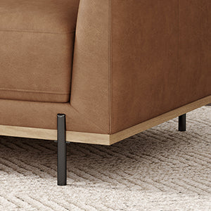 Experience comfort and style redefined with the Imogen Leather Chair. Crafted with a blend of modern design and industrial charm, its Kiln Dried Hardwood frame boasts integrated steel pin legs for a sleek touch. The tapered track arms, donned with top-stitch seam accents, deliver both flair and coziness. Seat cushions, upheld by a combination of webbing and zig-zag springs, offer unparalleled support. Wrapped in opulent Italian Nappa 11000 Top Grain Leather, the Imogen is a statement piece for any contemporary space.