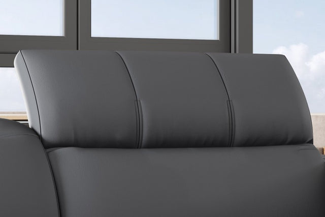 Built for luxury, this power reclining sofa lets you kick back in comfort and style. Crafted with precision, this sofa blends functionality and luxury for an elevated relaxation experience. Wrapped in Top-Grain Leather and supported by a solid Wood frame with steel legs, it exudes timeless allure and stability. Sink into ultimate comfort with Foam + Polyester cushion fillings. The left and right seats are ingeniously designed as Power Recliners with manual adjustable headrests for customizable relaxation. Transform your living room into a haven of comfort and style with Isla. Whether it's unwinding after a long day or enjoying a movie night, this sofa's power recliners ensure you find your perfect comfort zone.
