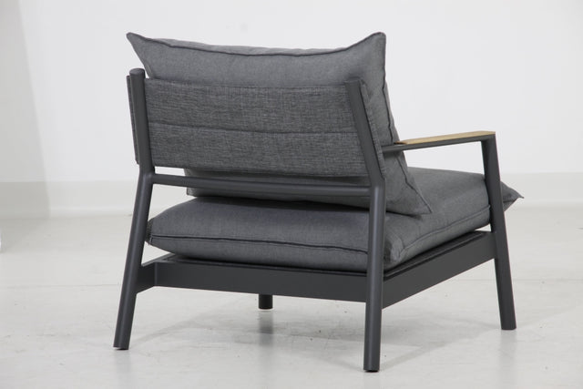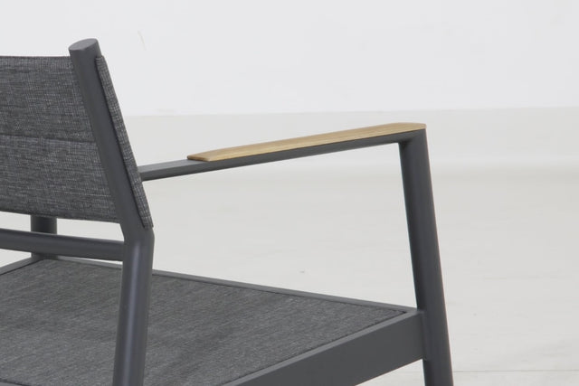 - Warm teak detailing: Natural teakwood armrests add an organic touch, balancing the sleek aluminum with a hint of warmth and texture.