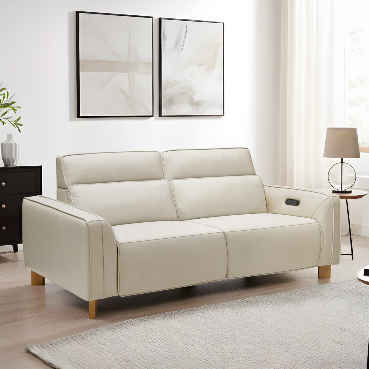 - Electric Dual Recliners Mechanism: Robust steel construction for effortless, personalized comfort adjustments and durability. Recliners are on both the left and right sides.