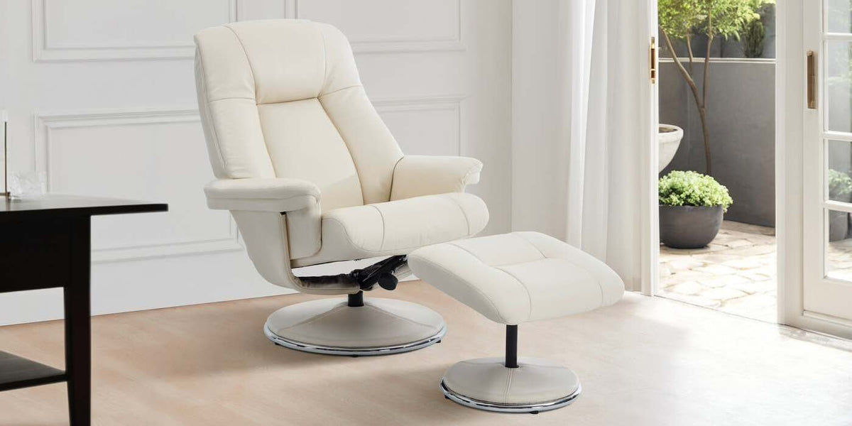 Lucinda Leather Swivel Recliner Chair with Ottoman