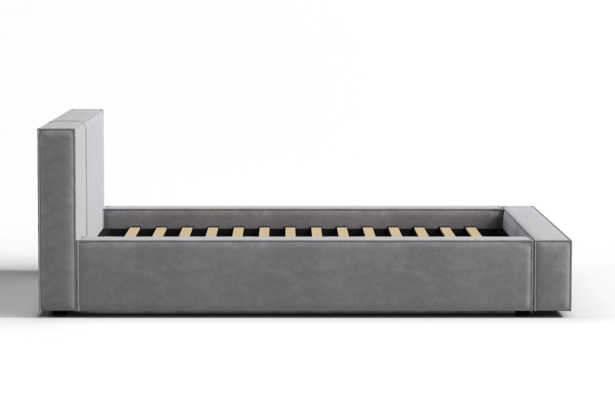 - A simple structured bedframe with a low-set profile.