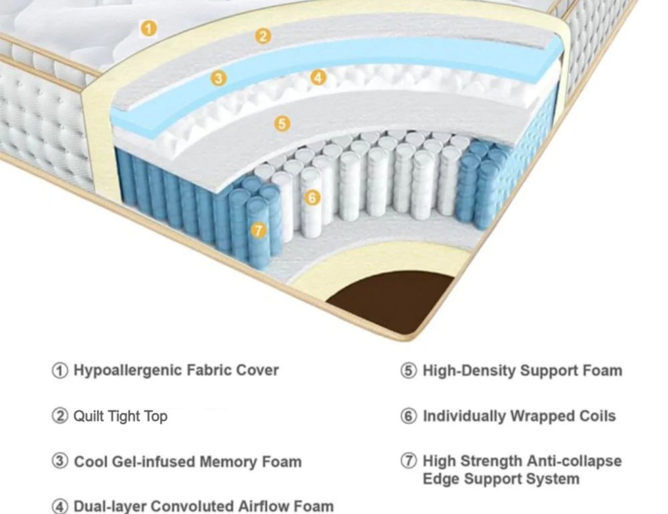 - Luxury Quilting: Luxury quilting ticking is putting the layer together contributes to the performance, feel, and durability of the mattress.