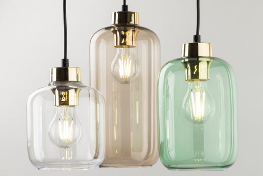 The MACRO lamp collection is ideal for loft-style interiors, featuring ceiling lamps and pendants in bold green and brown shades. With sleek transparent cylindrical lampshades and the option to mix and match colors, these lamps add a unique touch to any space. Available in three or six-light options, MACRO lamps suit various room sizes and create a distinctive ambiance that pairs well with both decorative and traditional bulbs.