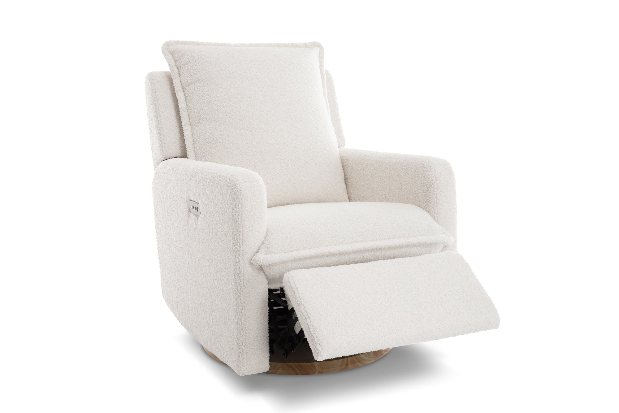 The Milo Sheepskin-Finish Fabric Swivel Recliner Chair is a blend of style, comfort, and functionality. Its plush cushions, filled with mildew-resistant polyester fiber, offer a soft and cozy spot to relax. The chair features a smooth swivel, glide, and recline mechanism, making it easy to find the perfect position or reach for nearby items. The motorized recline option adds effortless control with a push of a button and includes a USB port for device charging. With its sleek design and sturdy wood base, this recliner complements any space.