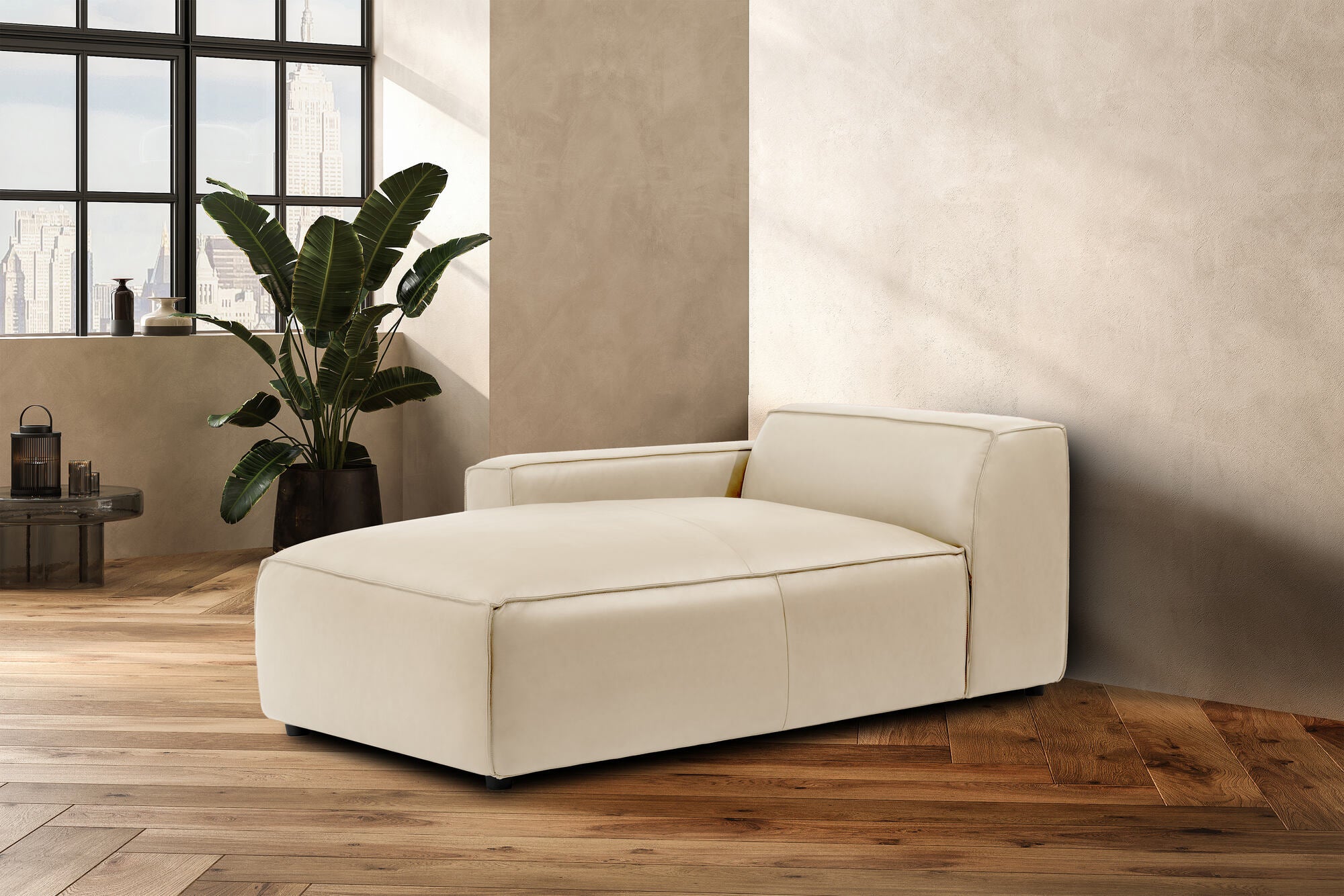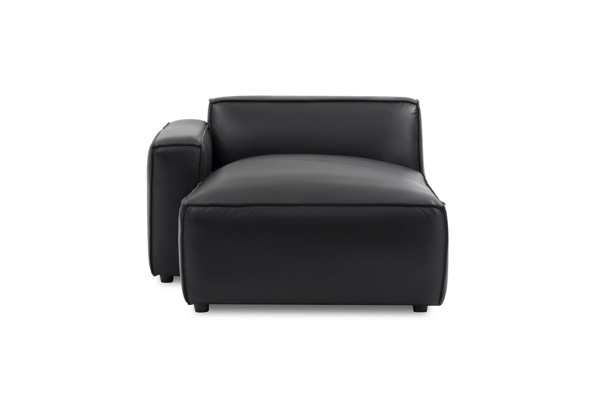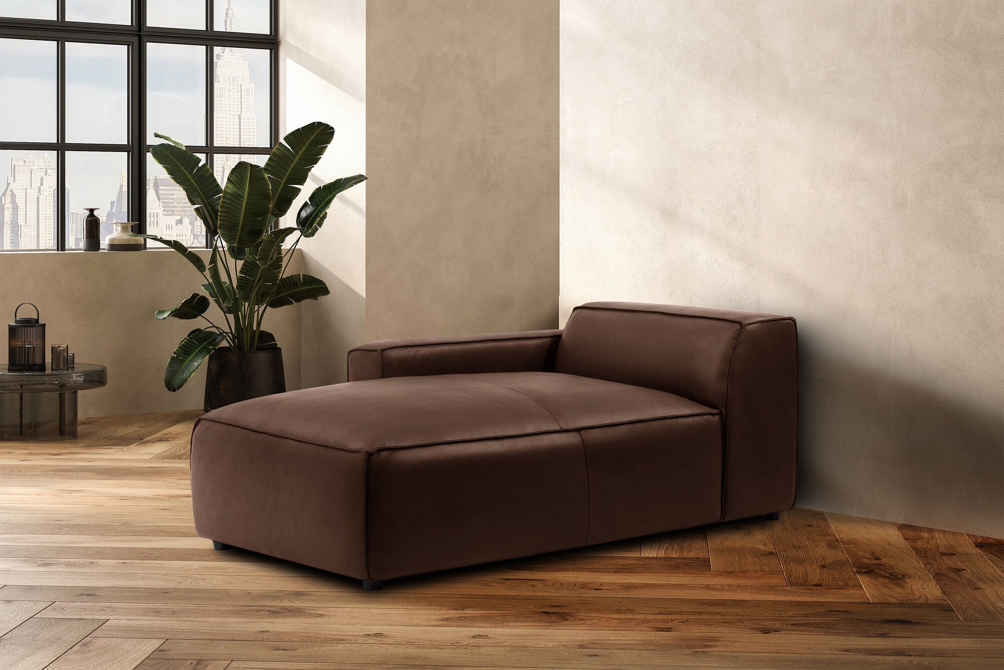 Introducing Nathan Leather Left Chaise Sofa Module - the perfect addition to any décor. With its classic design, luxurious full aniline leather upholstery, and comfortable semi-firm seats, you can snuggle up and enjoy the plush feather padding while lounging peacefully. Customize your configuration by adding individual pieces from the same collection.