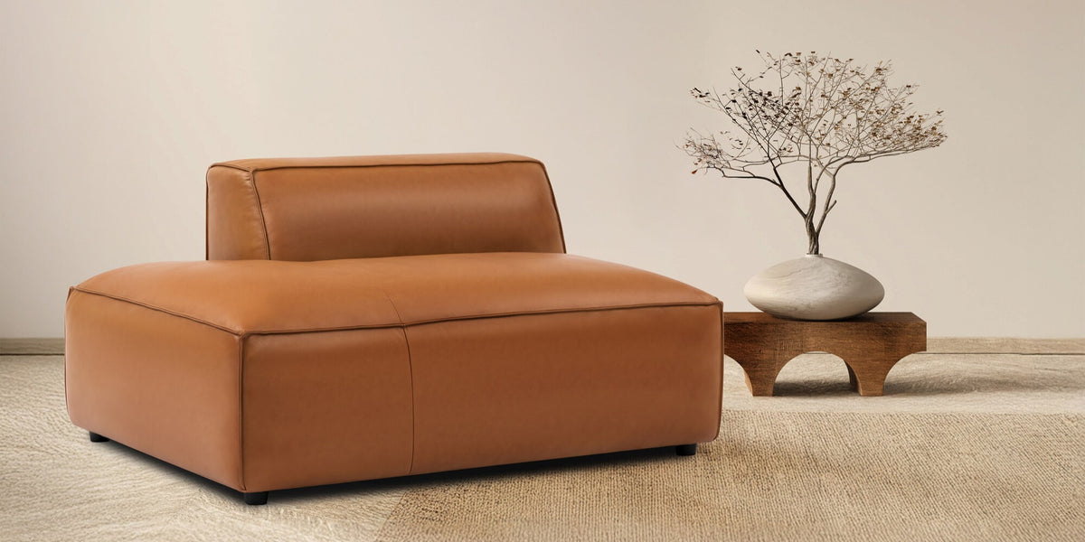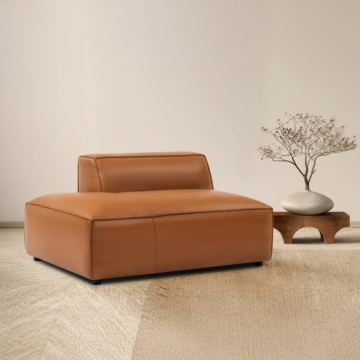 Introducing Nathan Leather Left Open-End Sofa Module - the perfect addition to any décor. With its classic design, luxurious full aniline leather upholstery, and comfortable semi-firm seats, you can snuggle up and enjoy the plush feather padding while lounging peacefully. Customize your configuration by adding individual pieces from the same collection.