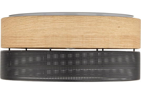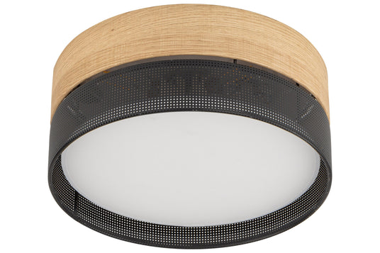 The Nicol lamp collection offers a refined and harmonious selection of lighting options, meticulously crafted to infuse any space with sophistication and elegance. This diverse collection includes a floor lamp, bedside lamp, pendant lamp, and ceiling lamp, each thoughtfully designed to provide tailored lighting solutions for various interiors. Featuring modern black metal frames and unique lampshades crafted from modified veneer and perforated black PVC foil, these lamps create a striking and stylish pattern.