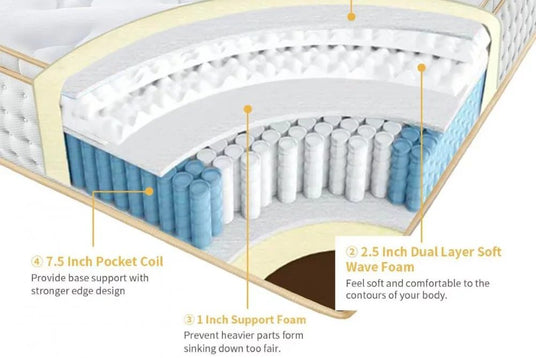 - Hybrid Marvel: Our mattress combines the best of both worlds - the exquisite support of Spinal Care Pocket Coil springs and the sumptuous comfort of high-density foam layers. This hybrid design ensures you enjoy superior support and plushness.