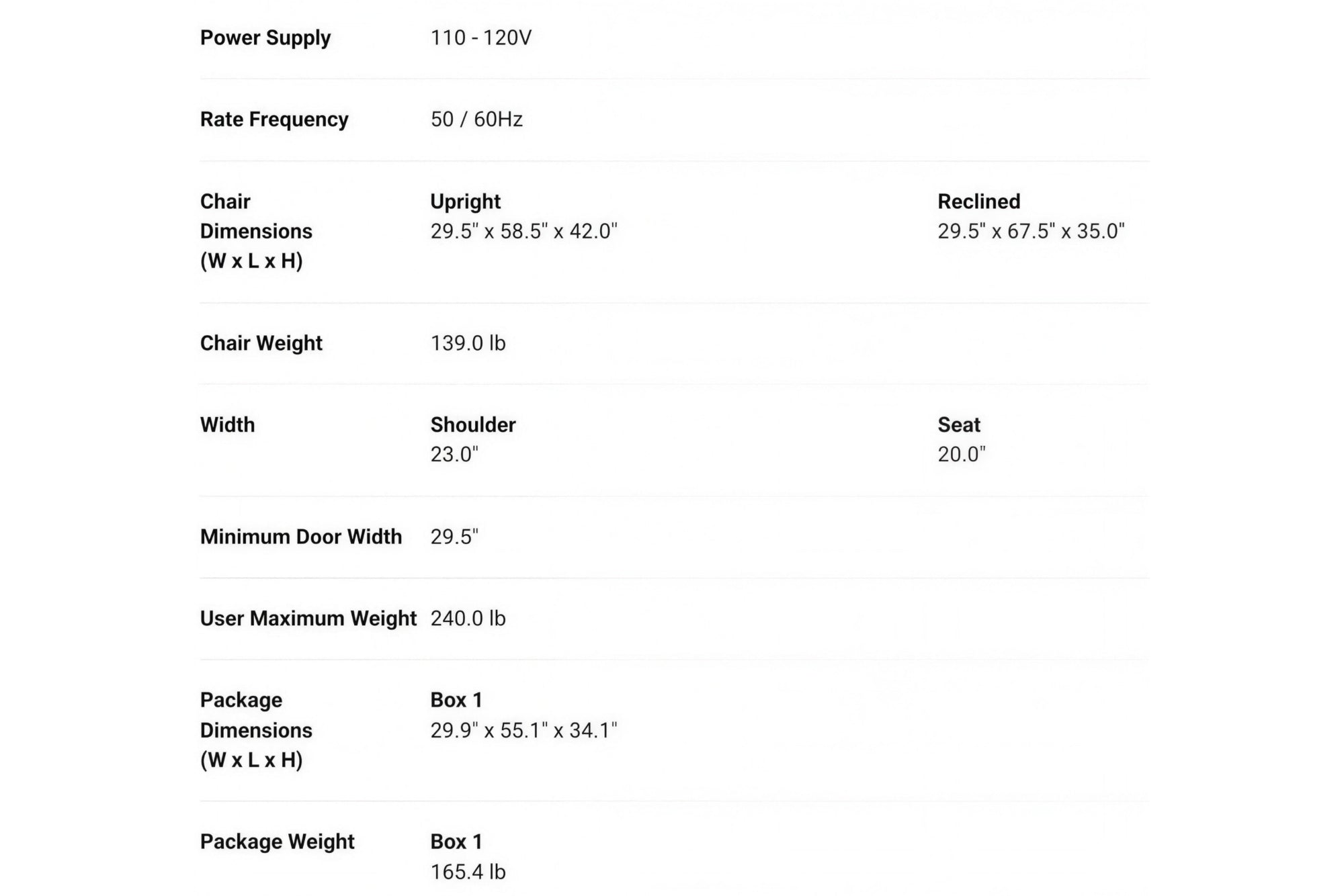 Recline into comfort with 2-stage Zero Gravity positioning, designed to reduce spinal pressure and promote deeper relaxation. The straight track system provides focused back coverage, while the 24-cell full body air massage gently compresses shoulders, arms, hips, calves, and feet for a soothing, full-body embrace.