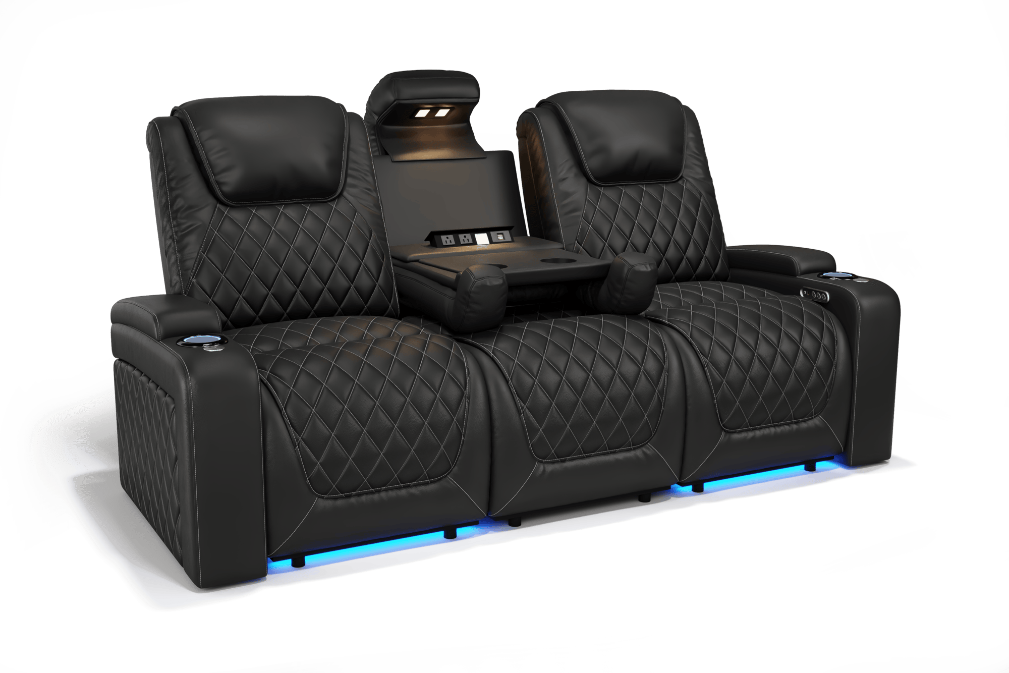 - The center seat easily transforms into a multifunctional console—featuring USB ports, cupholders, and a table—keeping everything you need within reach.
