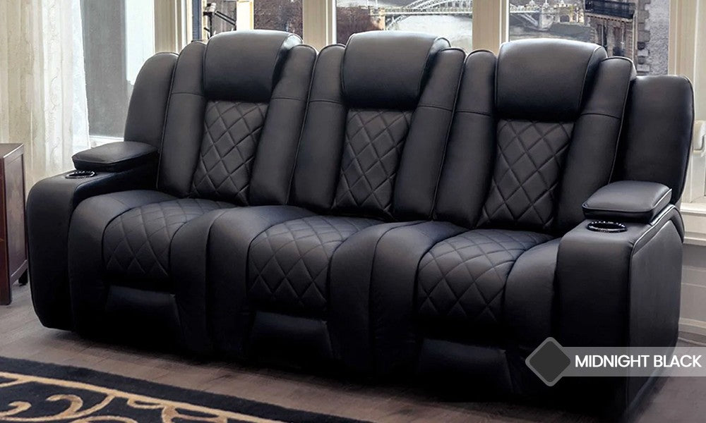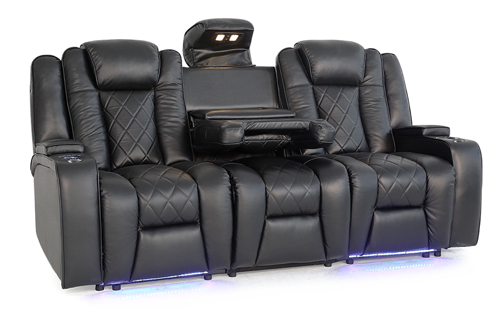 Combining design and function, the Oxford provides luxury through its supple leather, cozy cushions, supportive headrest and a center console that holds your favorite glass of wine and food platter. Both the left and right end seats are full power recliners with power headrest adjustability. Customization is possible so tailor as you see fit and enjoy the ultimate home theater experience with the Oxford.