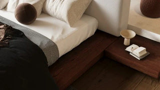 The Prize Wood Bed Frame beautifully combines contemporary design with modern functionality. Crafted from composite wood, natural wood veneer, and pine wood, its low-profile frame exudes minimalist elegance. The upholstered headboard adds a refined touch, while the sturdy pine platform offers excellent mattress support, healthier sleep environment. Paired with matching symmetrical nightstands, this bed blends style, comfort, and practicality, creating a serene and sophisticated bedroom retreat.